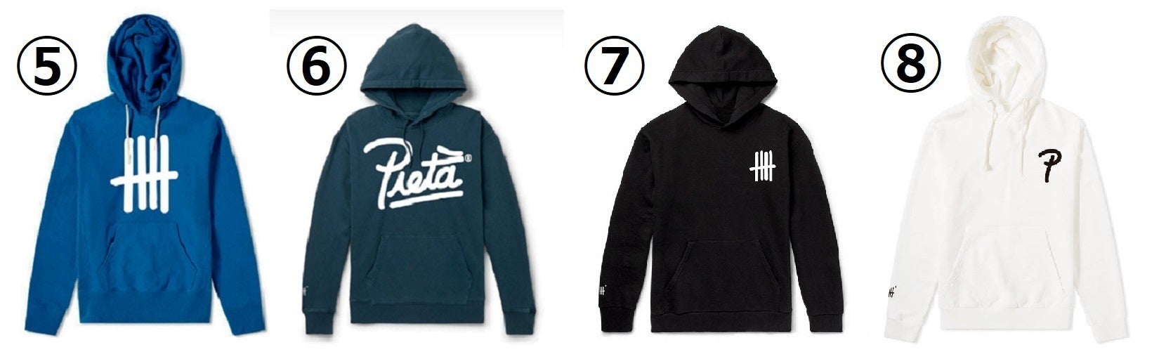 【補足】⑤、⑥の裏面は無地です。⑦は裏面に「Cartel Pietà」⑧は裏面に「Pietà」のロゴが入っています。詳細はギャラリーをご覧ください。