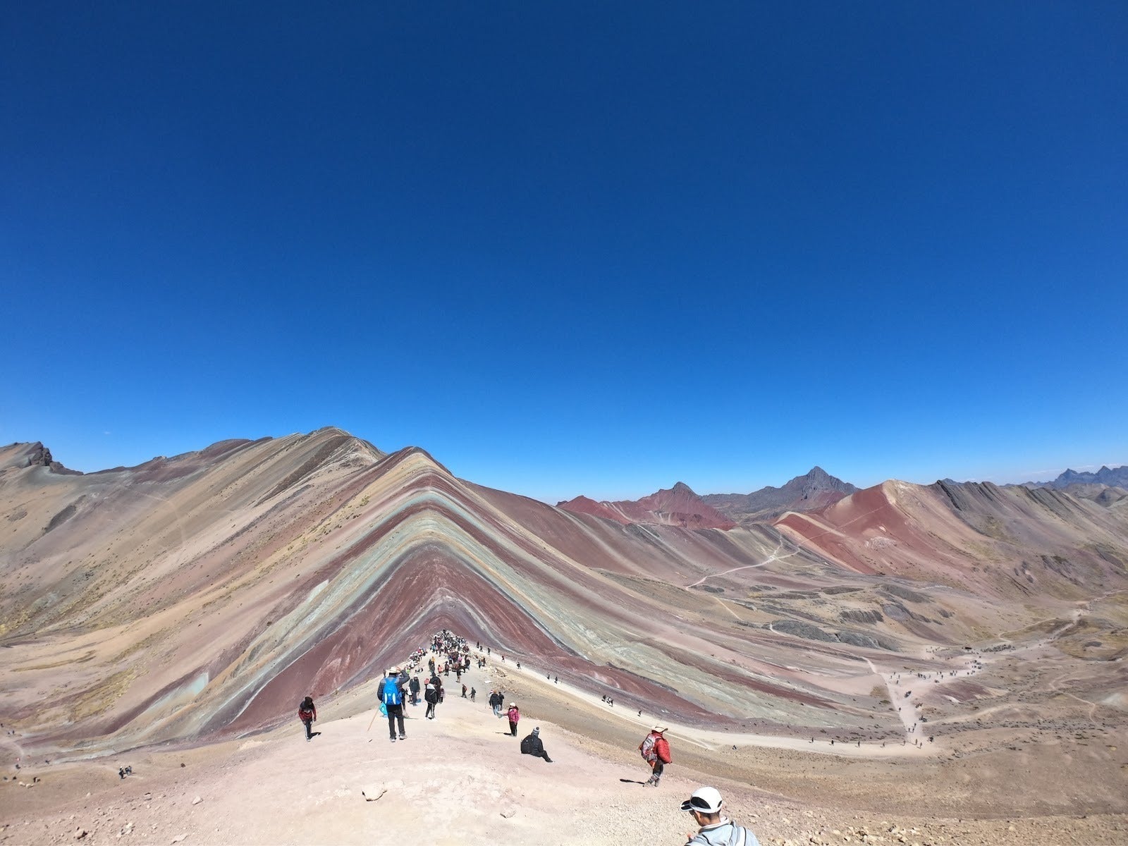 富士山よりも1400メートル高い山です。酸素濃度も低いので登るのは大変ですが、しっかりと体調を整えれば大丈夫です!頂上からの景気はまさに絶景。レインボーの山に感動したというよりは、その景色全体と登り切ったという達成感に感動しました。