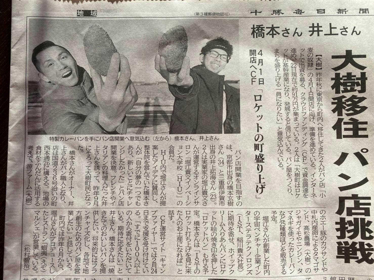 小麦の奴隷のTwitterアカウントの方では告知させてもらっていたんですがなんと十勝住民の多くに読まれている十勝毎日新聞に僕達のことを掲載してもらいました!