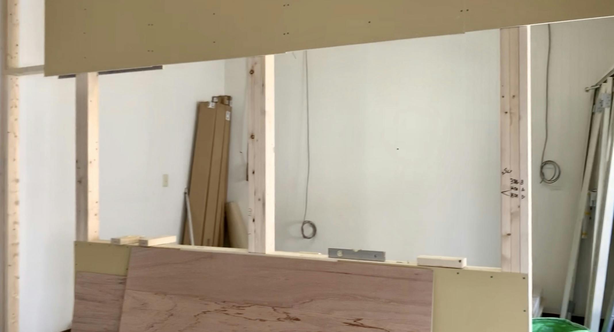 今週から始まっている小麦の奴隷 開業に向けた工事なのですが、今日見に行ってみると厨房と売り場の仕切りがほぼできていました(゚∀゚)