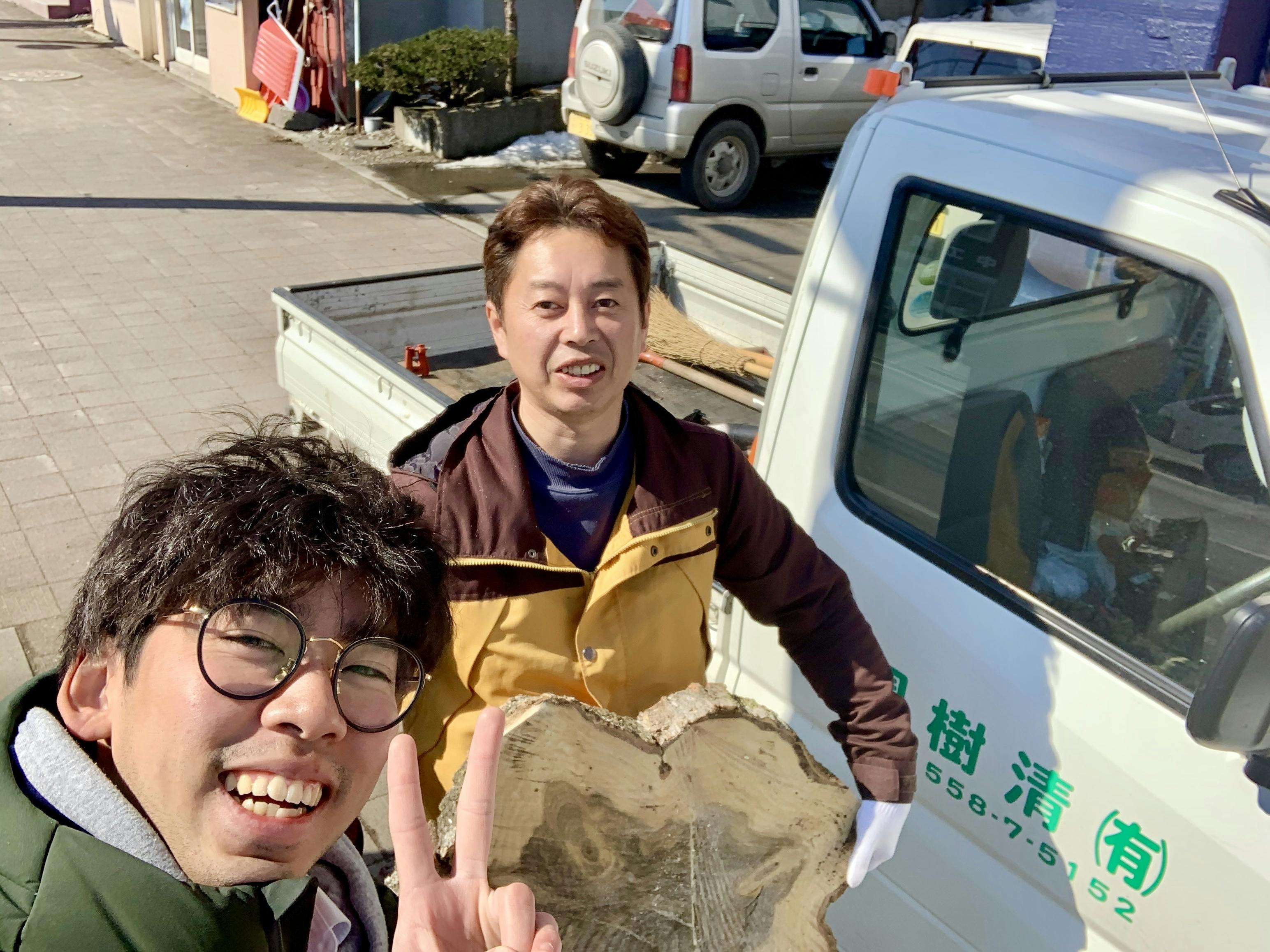 そしてお昼過ぎに仲澤さんという大樹町で木の伐採や管理をやられている方がいるんですが、大きな切り株を持ってきてくれたんです!!