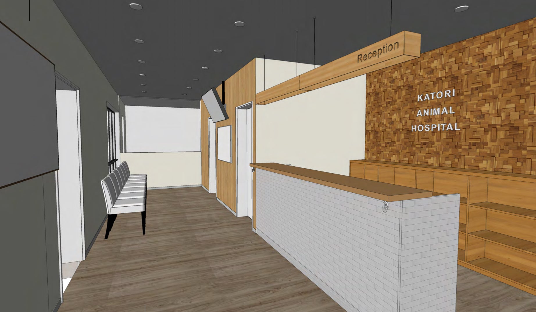 2019/08/23 18:00処置室ここでは、主に検査や処置を行う場所となります。シンプルに白を基調とした清潔感のある雰囲気に仕上げていただきました。診察室それぞれ個室の診察スペースとなっており、ワンちゃん用が2部屋、ネコちゃん用が1部屋となっています。また診察壁面にPC画面を設置し、画像検査等を画面上で説明できるようになっております。トリミング室トリミング室は待合室と隣に面しており、ガラス越しに見ることができます。また床の木目調のトーンを少しあげることで明るい雰囲気にしております。 もっと見る