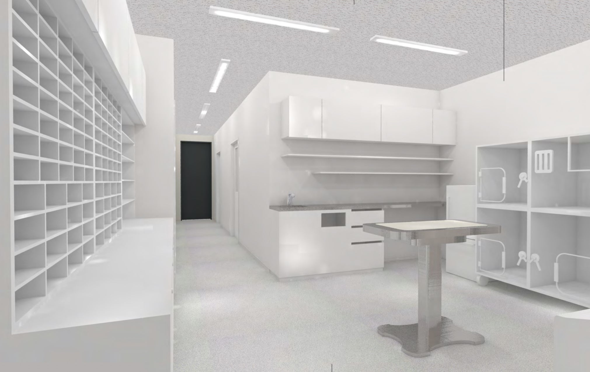 ・歯科処置なども行うことができるのシンク付き処置台を設置します。