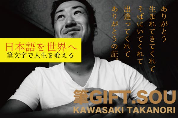 筆文字で書く日本語はきっと世界中の人の心を動かします。ありがとうや今の気持ちは、いつか忘れてしまうもの。その想いは、人を変えるはず、人を動かすはずです。私たちの想いで、世界中に笑顔を創り出しましょう。