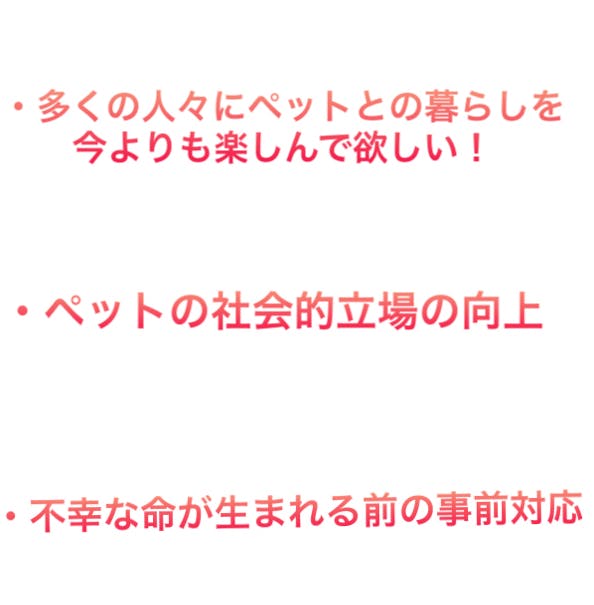 本来のペット市場の向上を図る為にもこの事業を行いたいと思いました。