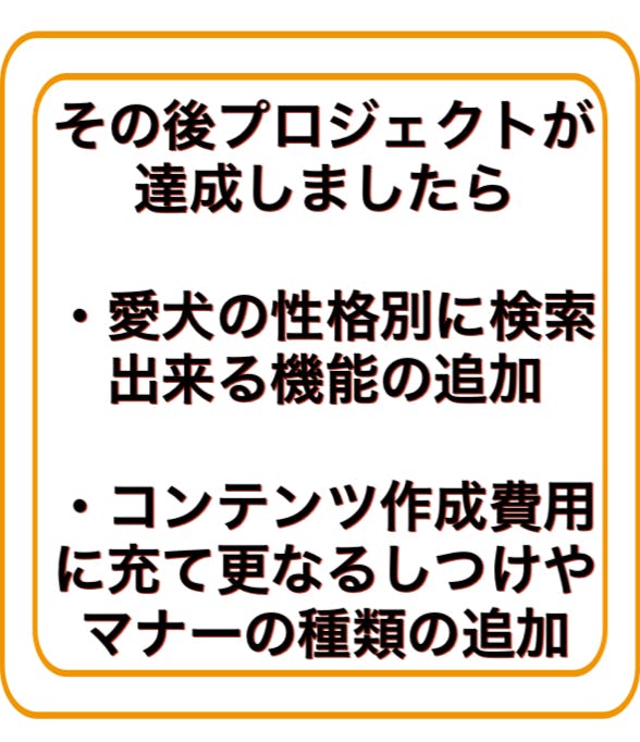 トレーナーさんのお力もお借りして100〜200本ほどのしつけ・マナー動画を制作予定