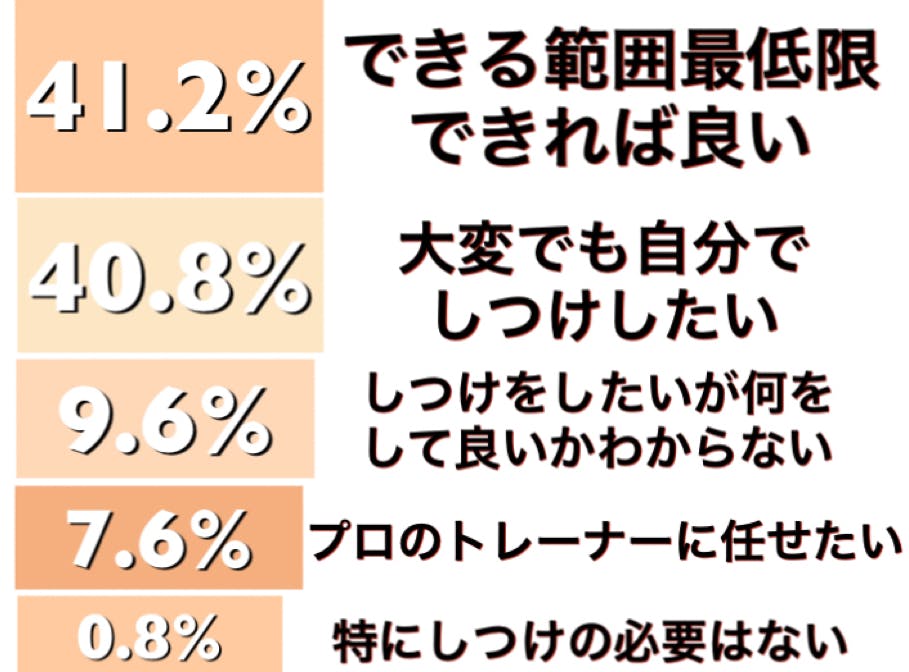 ペット関連会社のしつけの意識のアンケートでは、99.2%の飼い主さんがしつけに興味・関心があるとの結果でした。