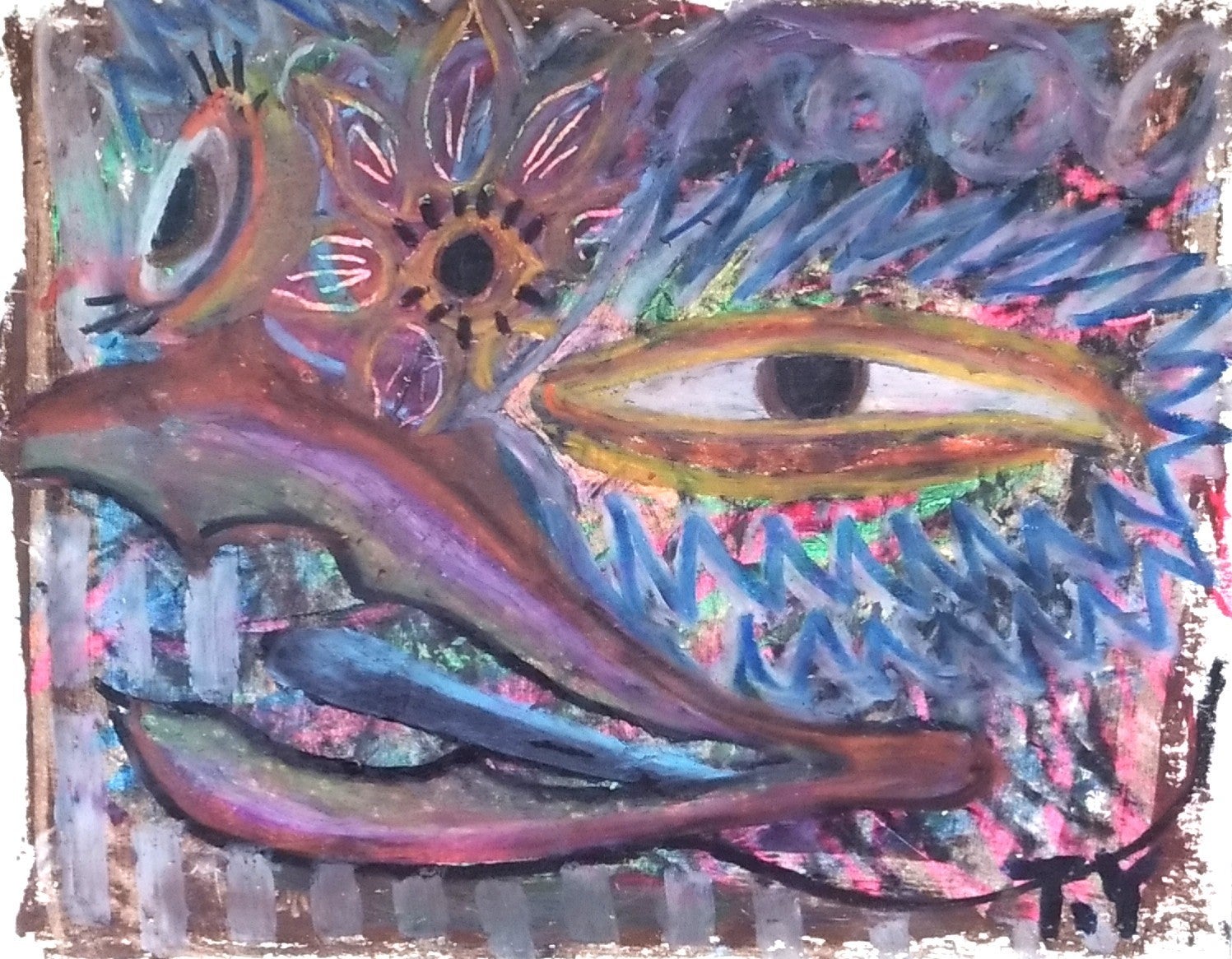 精神疾患、手帳保持の個人が描いた作品ですが、いわゆる障害者の作風でもなく国内のアールブリュット団体にアクセスするも扱いの範疇でないからと相手にされませんでした。