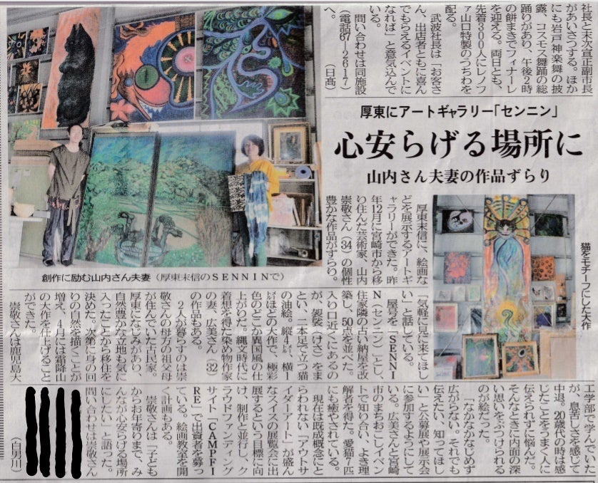 2019/08/01 00:26いつもありがとうございます。先日、地元の新聞に自宅アトリエ・ギャラリーの記事が掲載されました。暑い中お話を聞いてくださって写真もたくさんあり、大きく載っていました。数件お問い合わせもいただき、大変うれしく思います。クラウドファンディングのことも載せていただきました。新たにに支援くださる方が現れることを希望しつつ、今後も地道に励みたいと思います。 もっと見る告知しに回りました