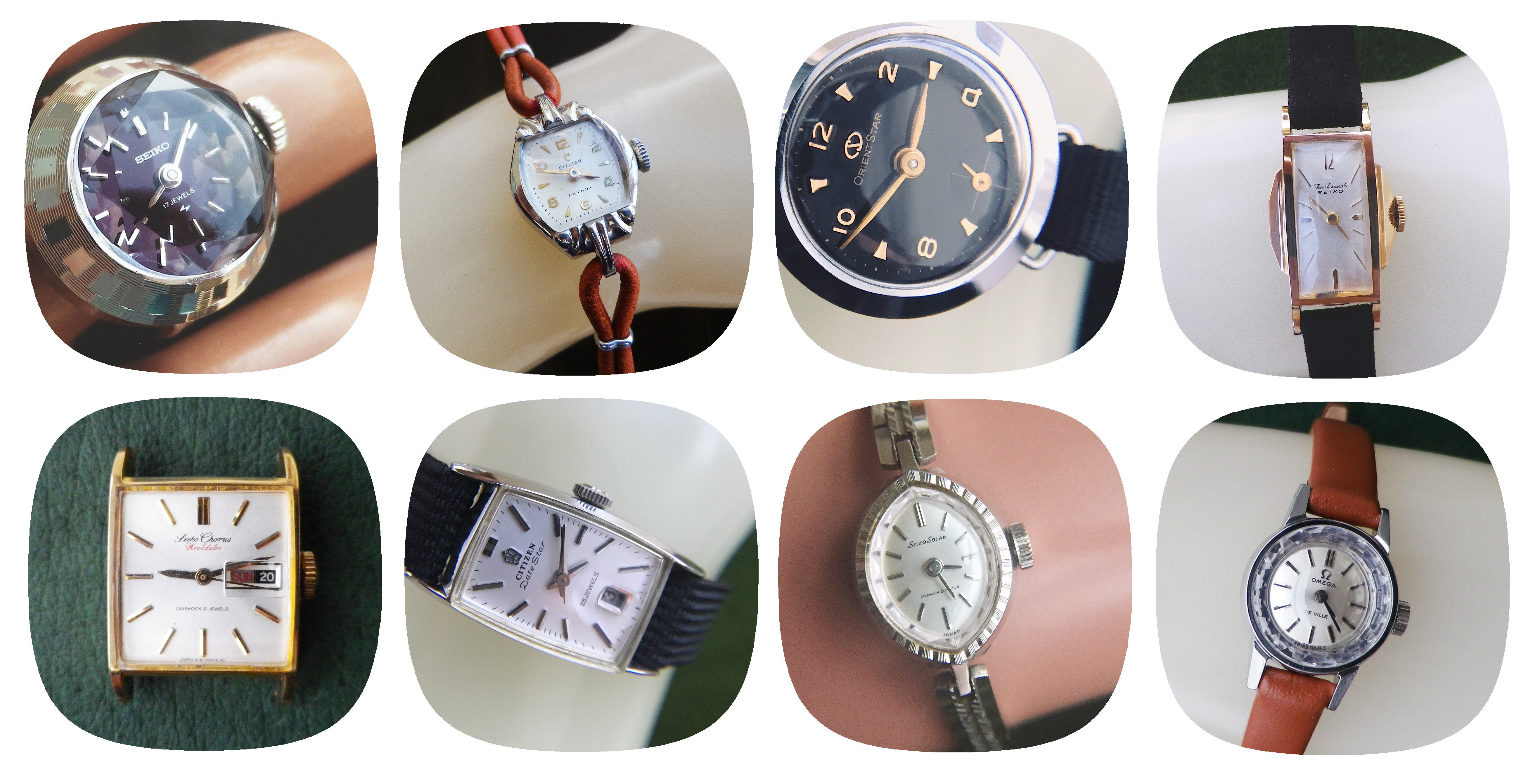 レディースヴィンテージウォッチ、とりわけ国産品はとてもニッチな世界です。きわめて少数の、知ってる人だけが楽しんでいる世界。でも、皆んな知らないだけで可愛い時計、品のある時計がたくさんあります。当時の国産メーカーの「素晴らしい時計をつくるんだ!」という気持ちが時計に表れていて、キラキラしている時計たちです。