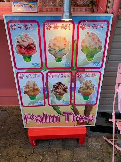 メニューは、いちご・マンゴー・シークワーサー・ブルーハワイ・抹茶・ティラミス