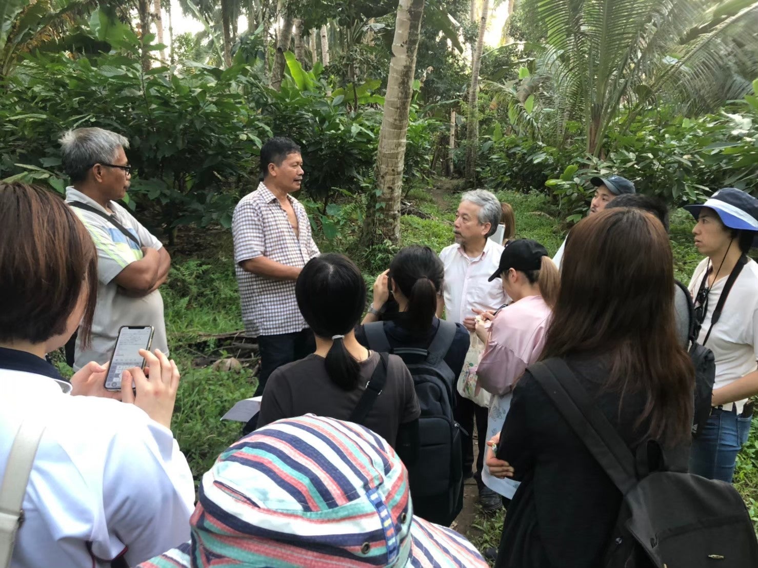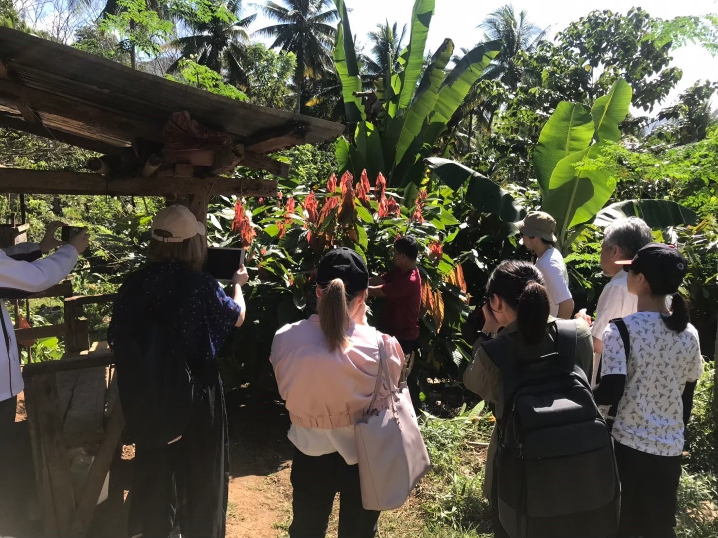 農園にて実際にカカオの木を観察している様子。