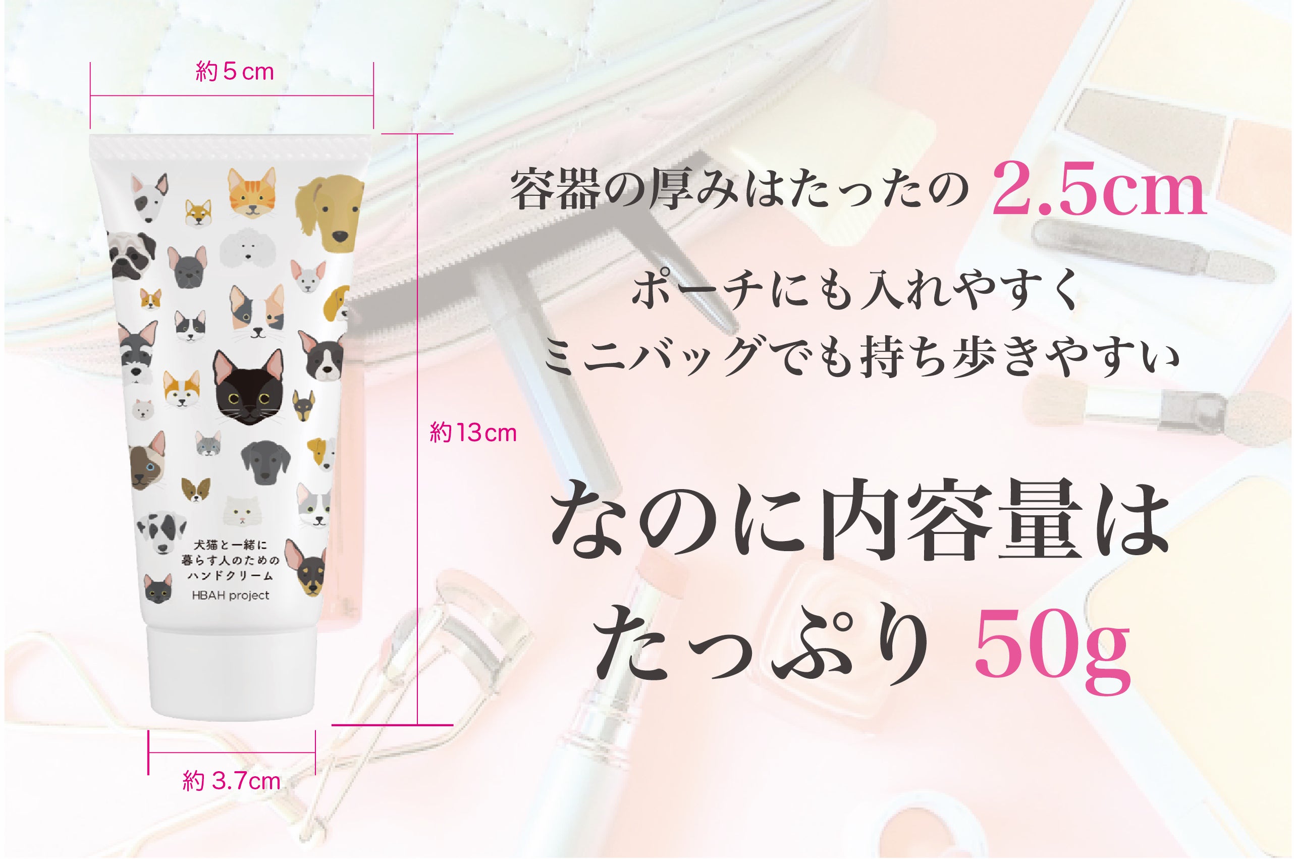 季節問わず、ハンドクリームは肌身離さず必需品であるという方も多いでしょう。在宅時間が多くなった方は特に、愛犬・愛猫と触れ合う時間が増えたのではないでしょうか。犬は猫よりも人間をペロペロ舐めて愛情表現をしてくれるし、猫は犬よりも自分の体を舐めます。どんなハンドクリームを使った手で動物と触れ合うのか。今一度、考えてみても良いのでは、と私は思います。ぜひこの商品が、多くの「犬猫を愛する人」の元へ届きますように、心から願っております。