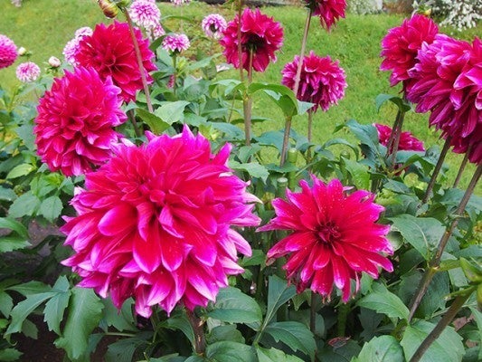 湯遊ランドはなわ敷地内にあり、大小様様、色とりどりのダリアが咲き、スカーフ・ハンカチなどのダリア染めや球根の漬物も人気です。ダリアは町のいたる所で咲き、人々を和ませています。