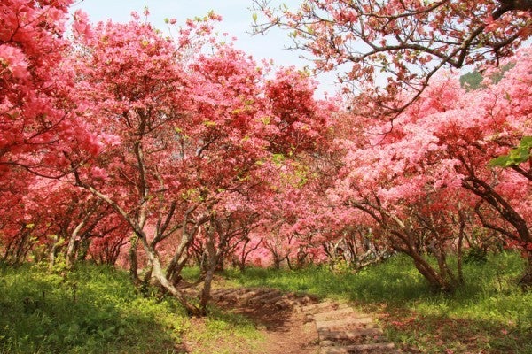 4月下旬から5月初旬にかけて、約4,000本の山つつじが咲き誇ります。今から約100年前に地元の青年会が植え、自宅の風呂からでも見られるようにと、風呂山と名付けました。