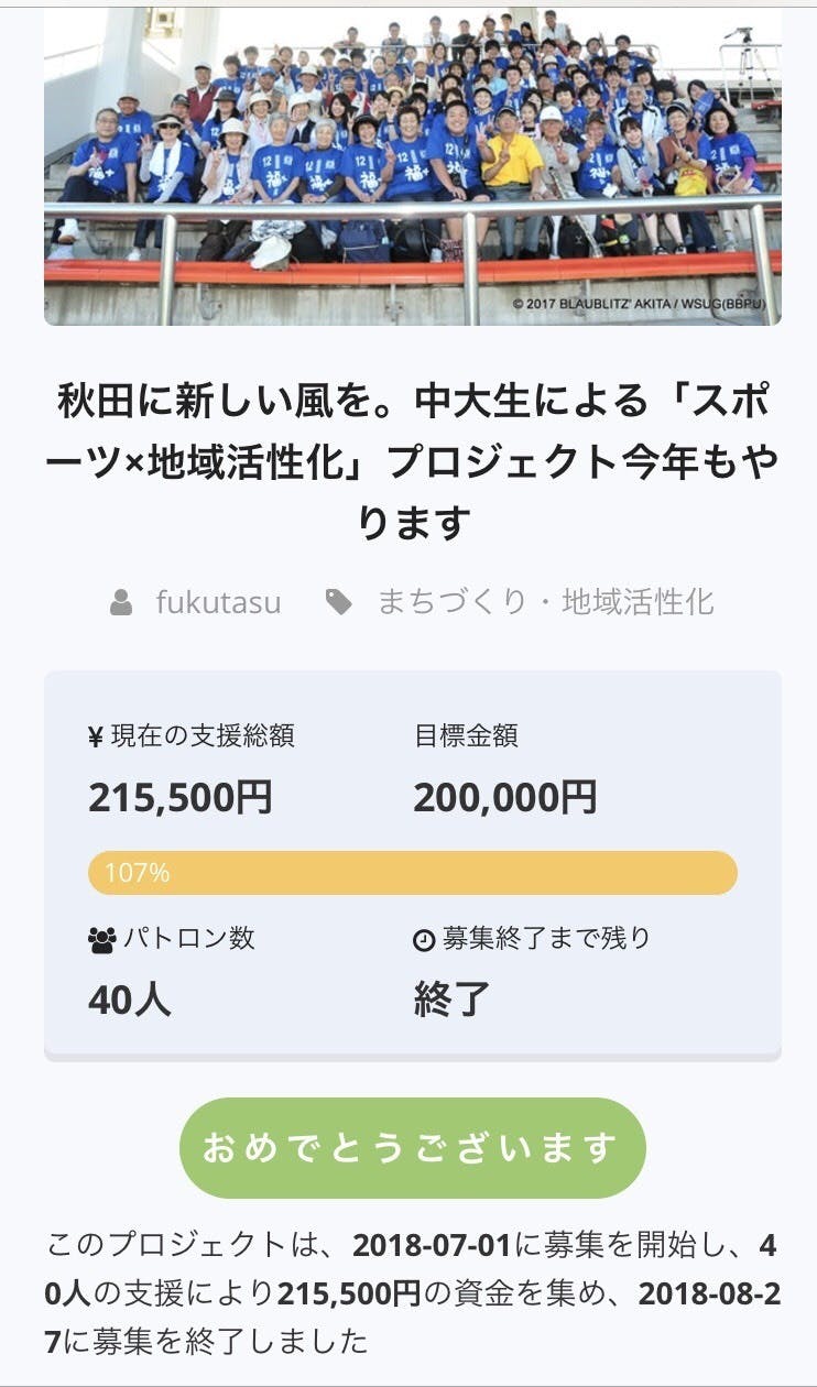 この想いでクラウドファンディングに挑戦させていただきました。プロジェクトの認知拡大は、必ず「秋田」の地域活性化になると考えています。
