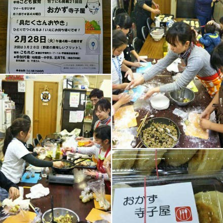 今日はおかず寺子屋で、具だくさんお焼きを作りました。