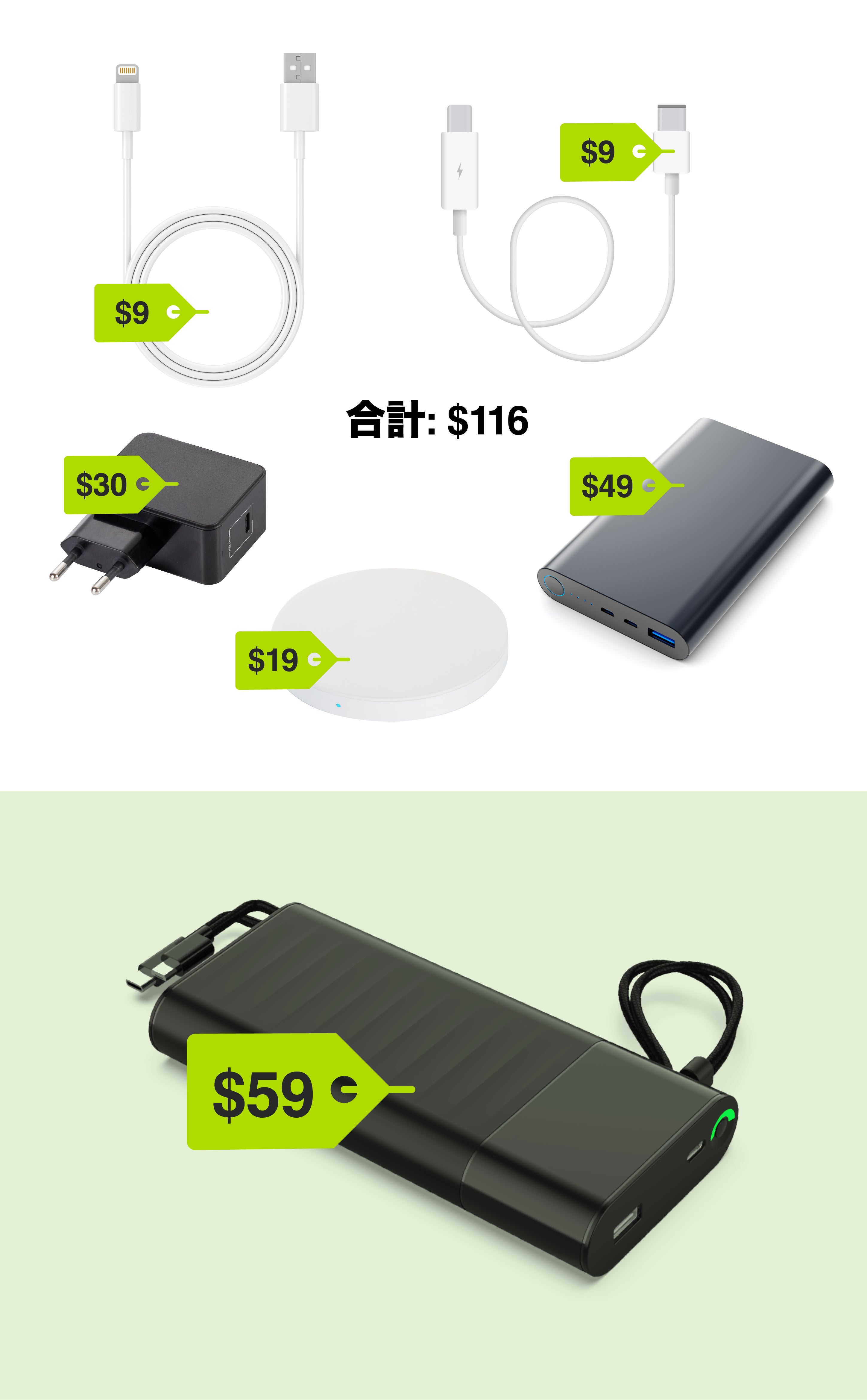 あなたはいくつのデバイスを持っていますか?スマホ、会社用の携帯、ラップトップ、タブレット、カメラ、ヘッドフォン…挙げればキリがないかもしれません。出張や旅行の際、これらの充電器・ケーブルを持ち歩くことを考えると気が重いですよね。絡まったケーブル、パンパンなったバッグ…。
