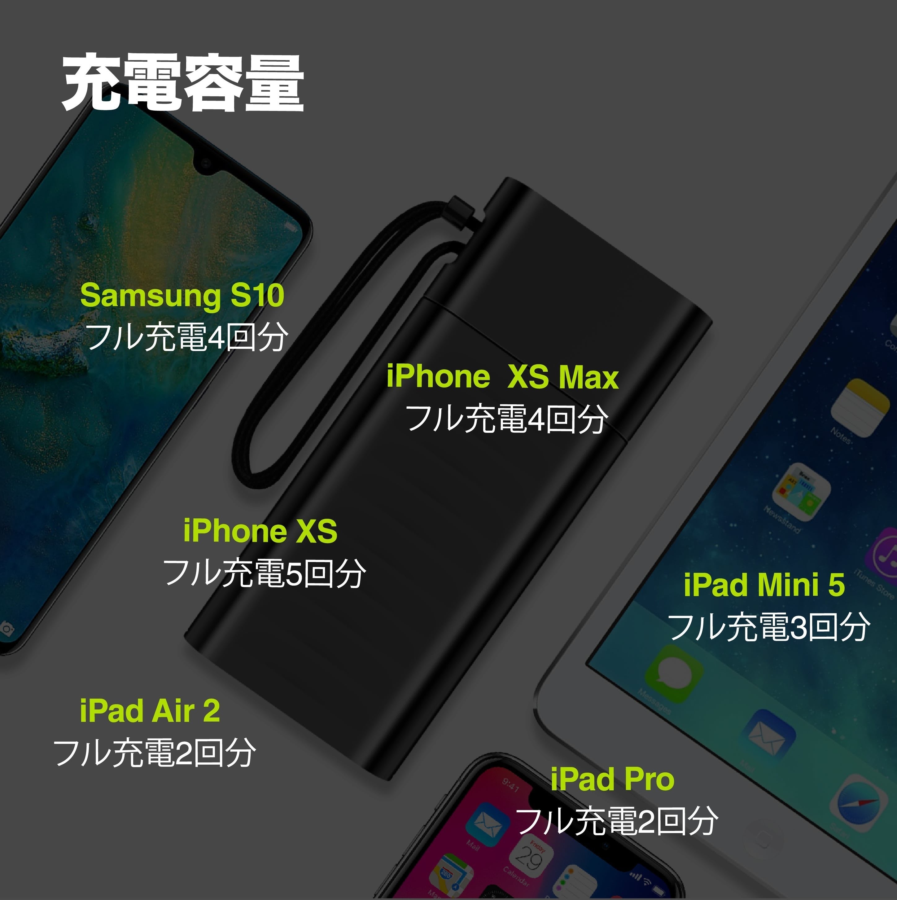•スマートフォン5〜7回分、タブレット2〜3回分、ノートパソコン1〜2回分の充電が可能