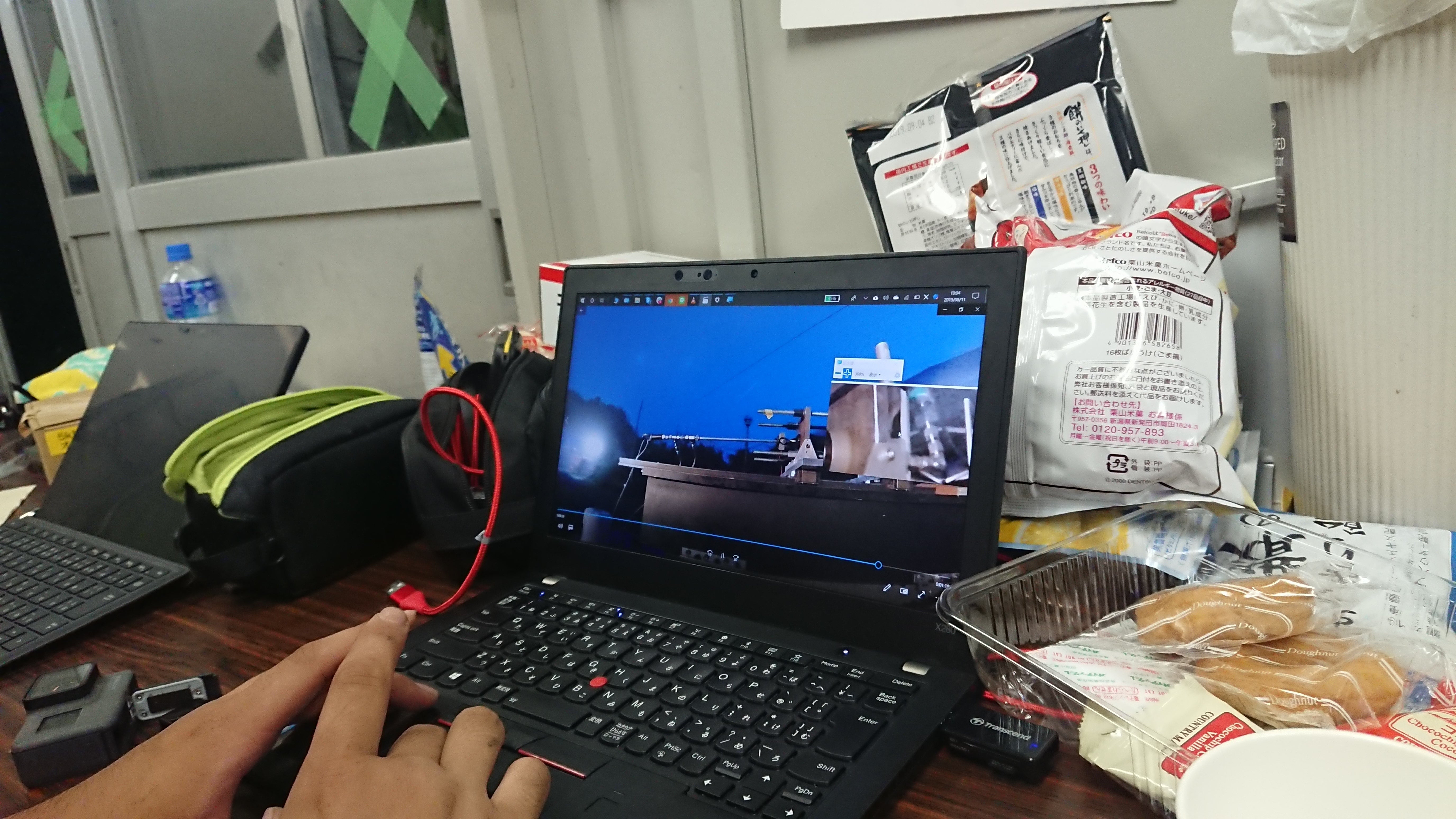 例えば上の動画の点火試験。バッテリーのプラス極とマイナス極に繋がる導線をマスキングテープ越しにショートさせます。大きな電流が流れて発熱しマスキングテープが点火します。マスキングテープ部分の導線の切り口や、導線の長さによっては点火しません。何度か試してから点火を確認しました。