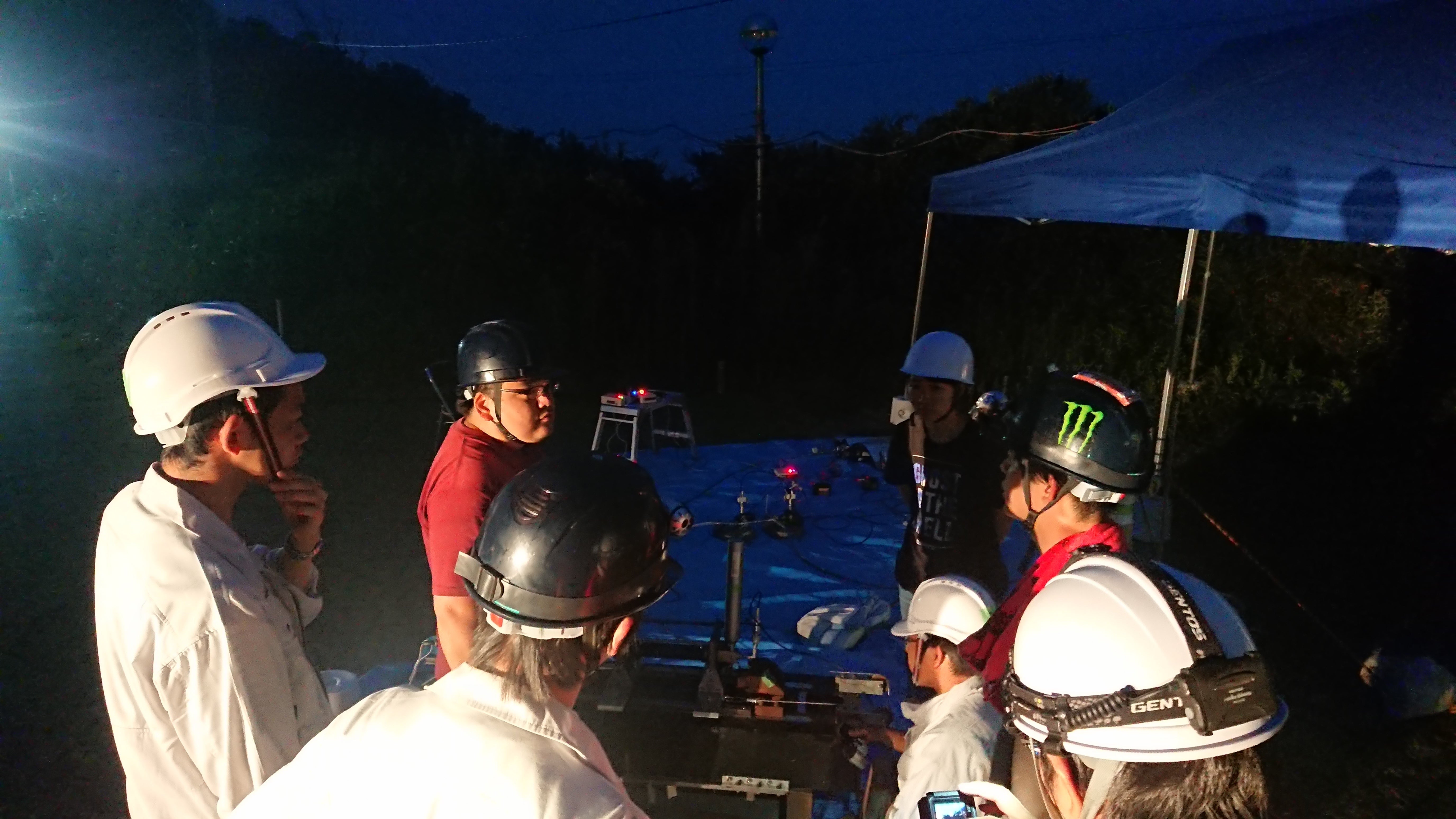 試行錯誤や調整を重ねていると、いつの間にか辺りは暗くなってきました。タイムリミットは刻一刻と迫ってきます。それでもみんな最後まで諦めません。話し合いながら問題の原因を一つずつ特定して解決していきます。そしていよいよ燃焼実験のラストチャンスです。
