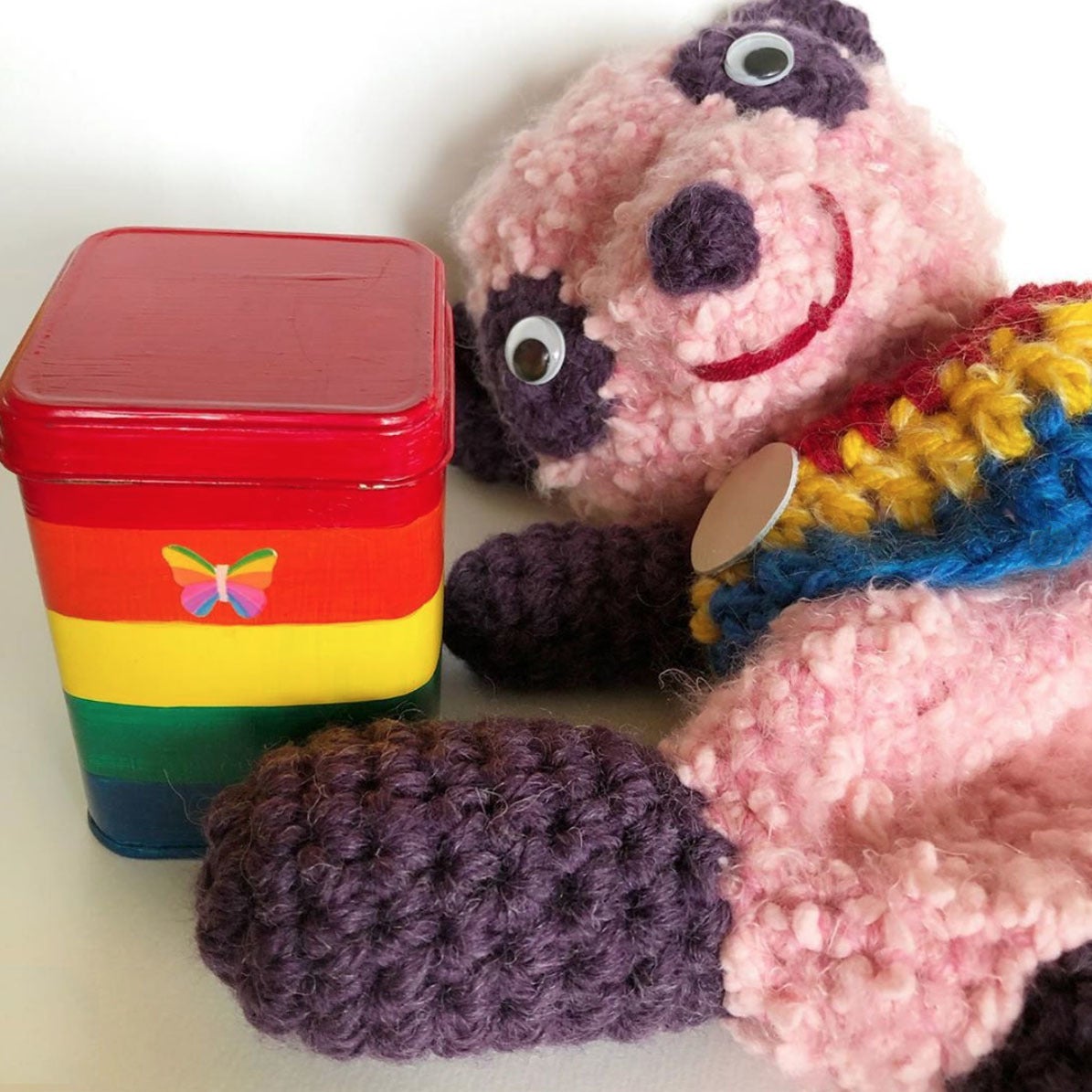 中に入っているレインボー缶は