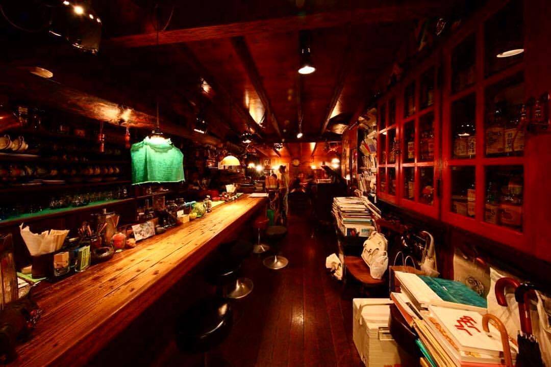 仕事を終えてからの、おなじみ飲み屋営業。まずは腹ごしらえに、親不孝通りの「屋根裏貘」へ。こちらのカフェバーは「アートスペース貘」というギャラリーを併設しており、元々は九産大近くの「夢工房貘」というお店から始まりました。創業は1976年、九産大芸術学部の学生や教授たちが多く訪れる、福岡アート界の老舗スポットです。
