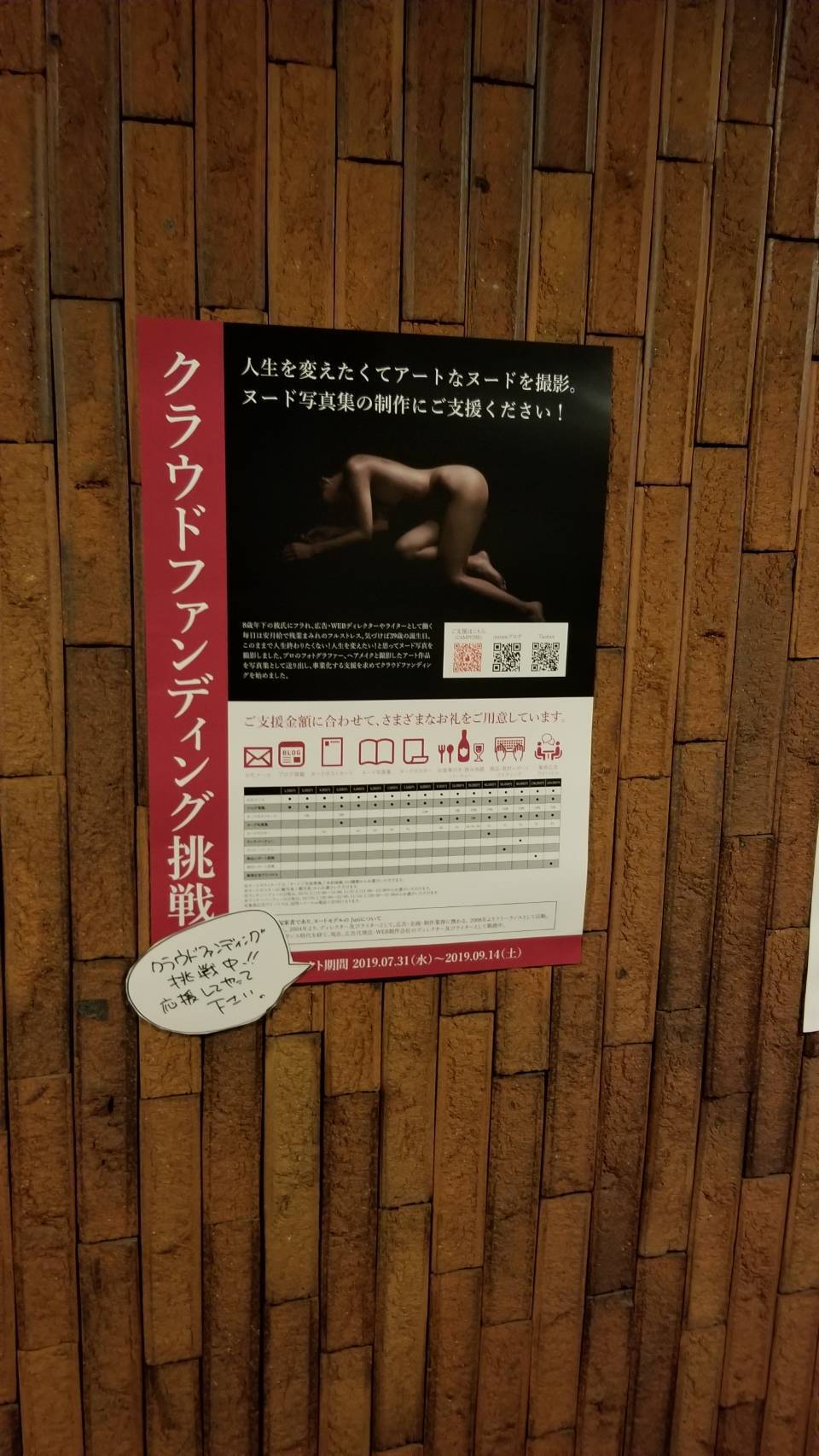 バーベキューの時には、支援をいただくに留まらず、ポスターをお店に貼るからくれと言ってくださり。しかも「2枚くれ!」と。もちろんチラシもお渡ししました。後日、ポスターを貼った写真も送ってくださいました。手書きの吹き出しに温かみがあって、すごく嬉しい!