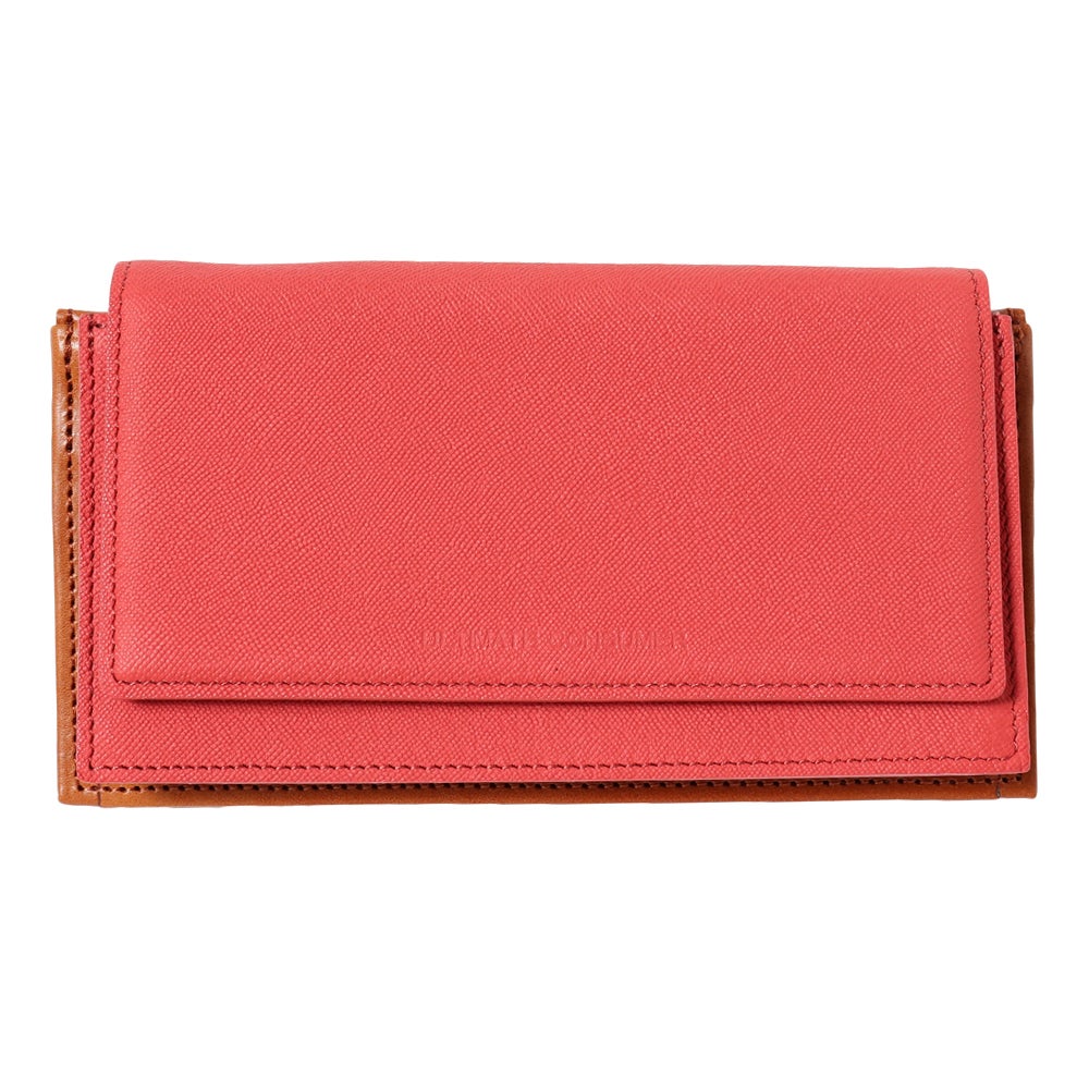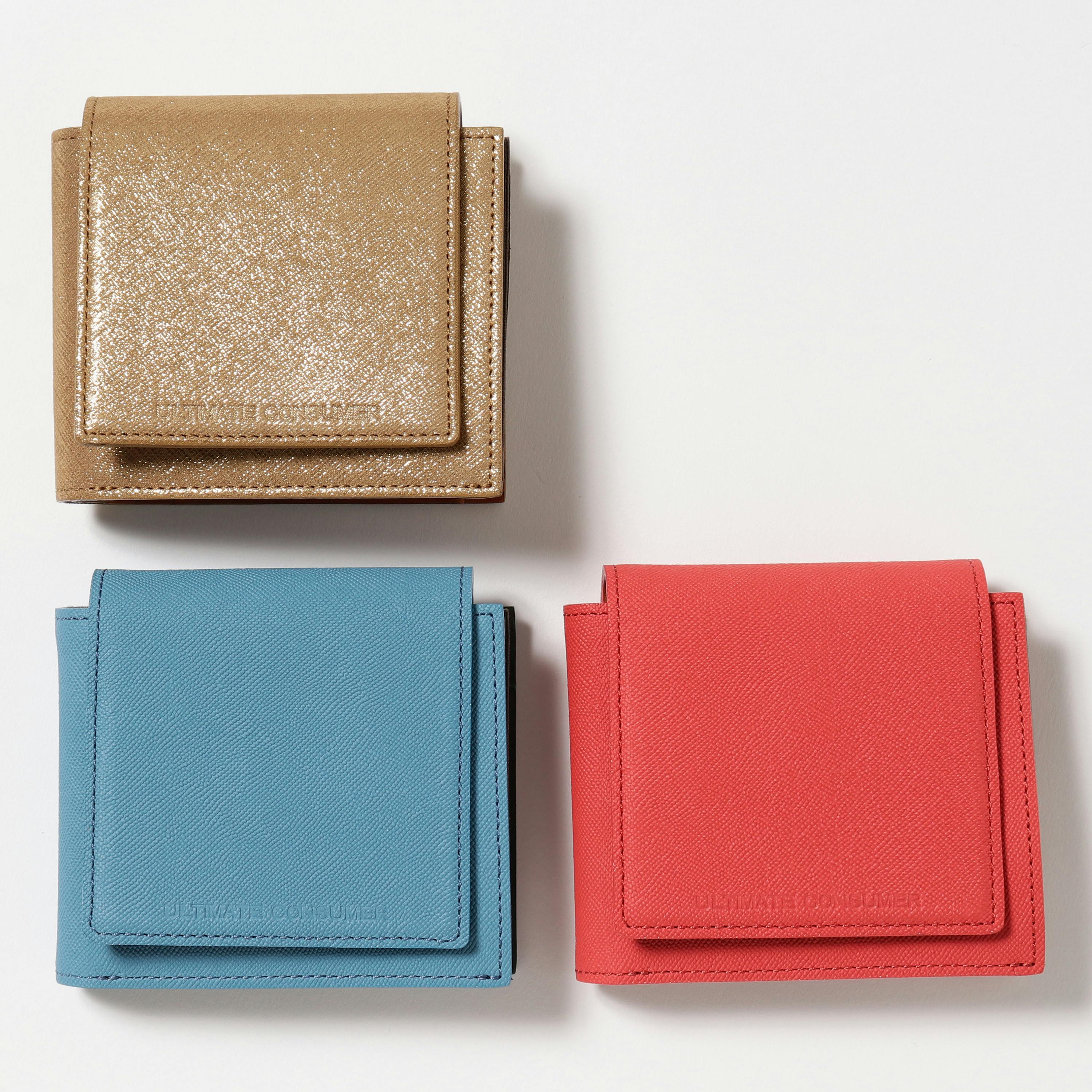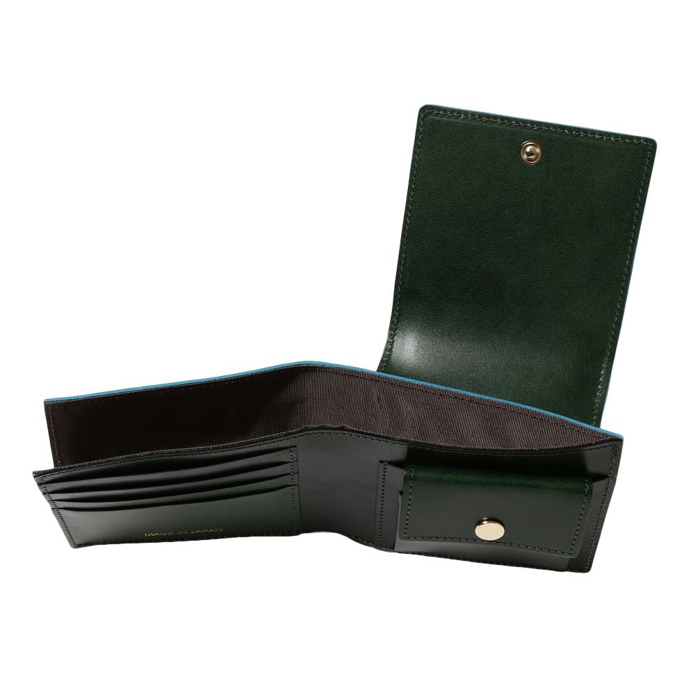 二つ折りのコンパクトウォレットについて表と内の配色が特徴のコンパクト。