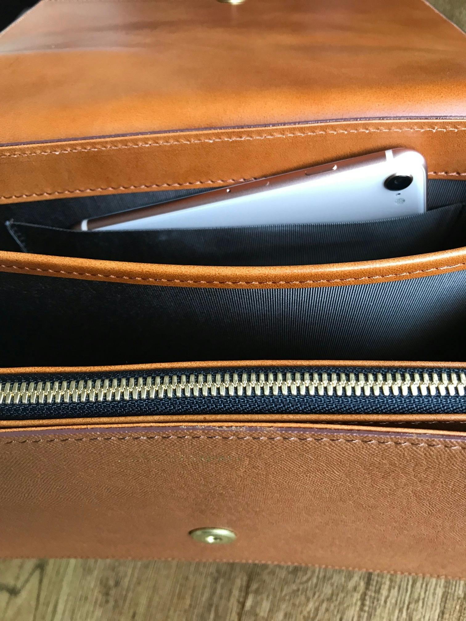ポケットはスマートフォンも入るサイズに設計(大画面のタイプは入りません・入らない機種もございます。スマートフォンケースによっては入らない場合もございます)