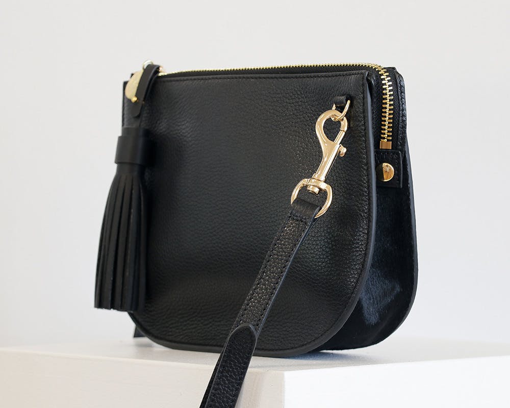 大人っぽいブラックカラーの本皮バッグは、カジュアルやフォーマルなシーンにも大活躍。