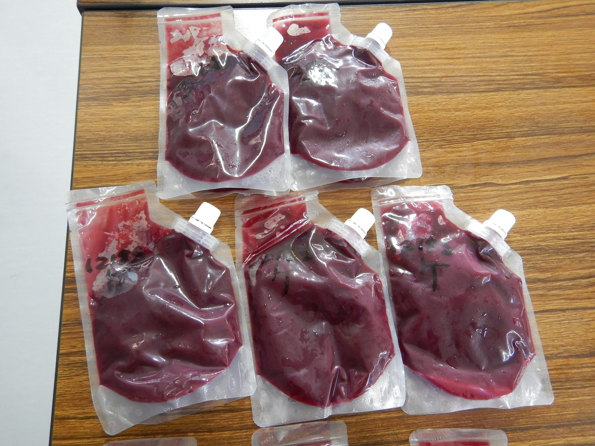 開発中の加工品です。(上)ソース、(下)ジュース