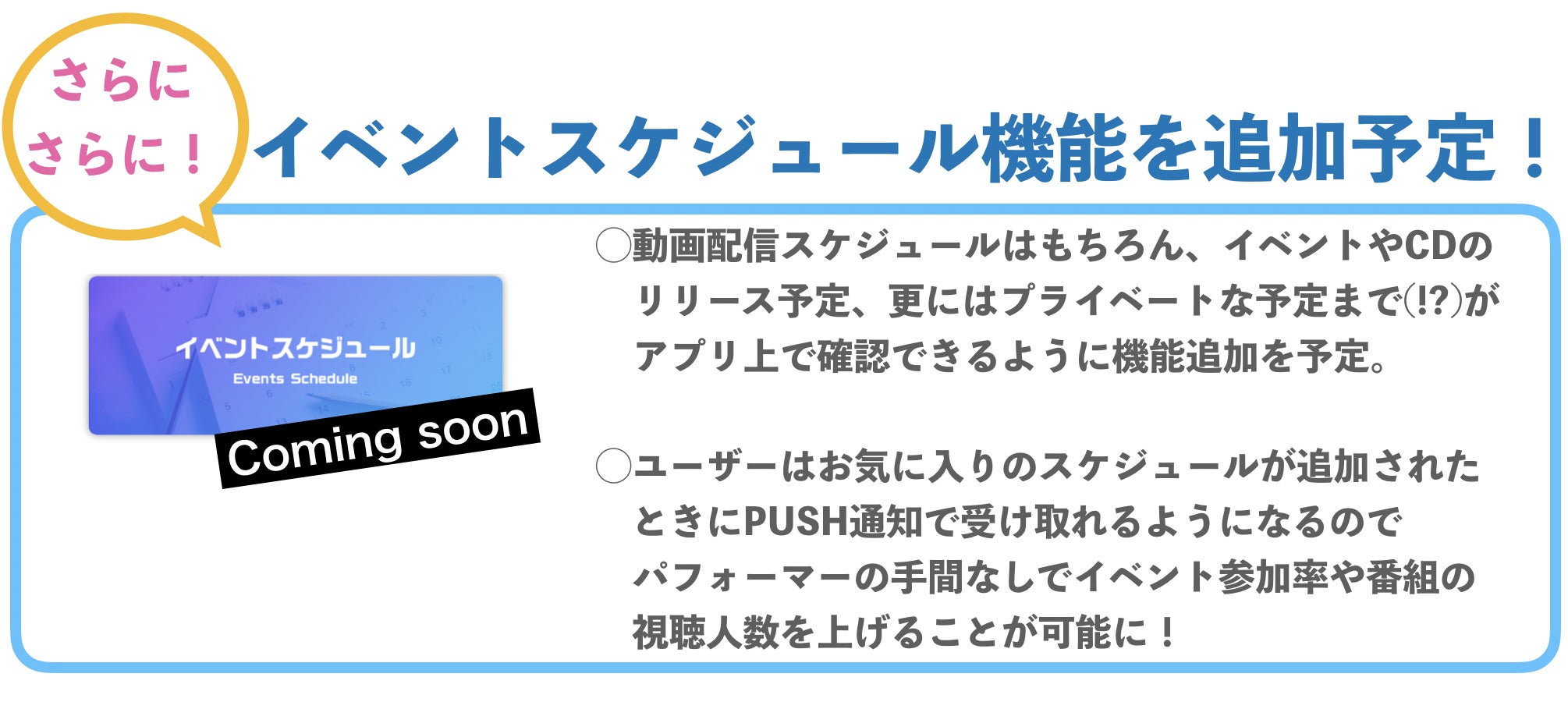 ☆パフォーマーもファンにも、喜んでもらえる追加機能をドンドン開発予定です!