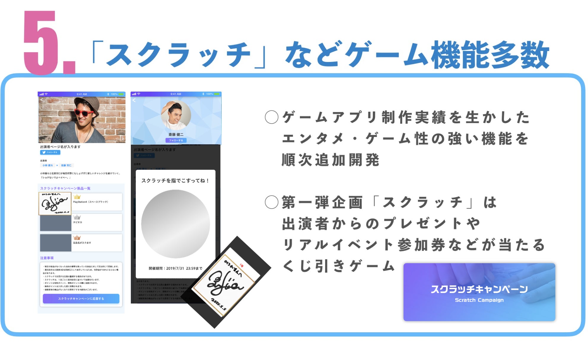 アプリの特徴をご紹介していきます!既存サービスにない面白さや、かつメンズアイドルの活動を応援していくことを重視した企画・機能の数々です!