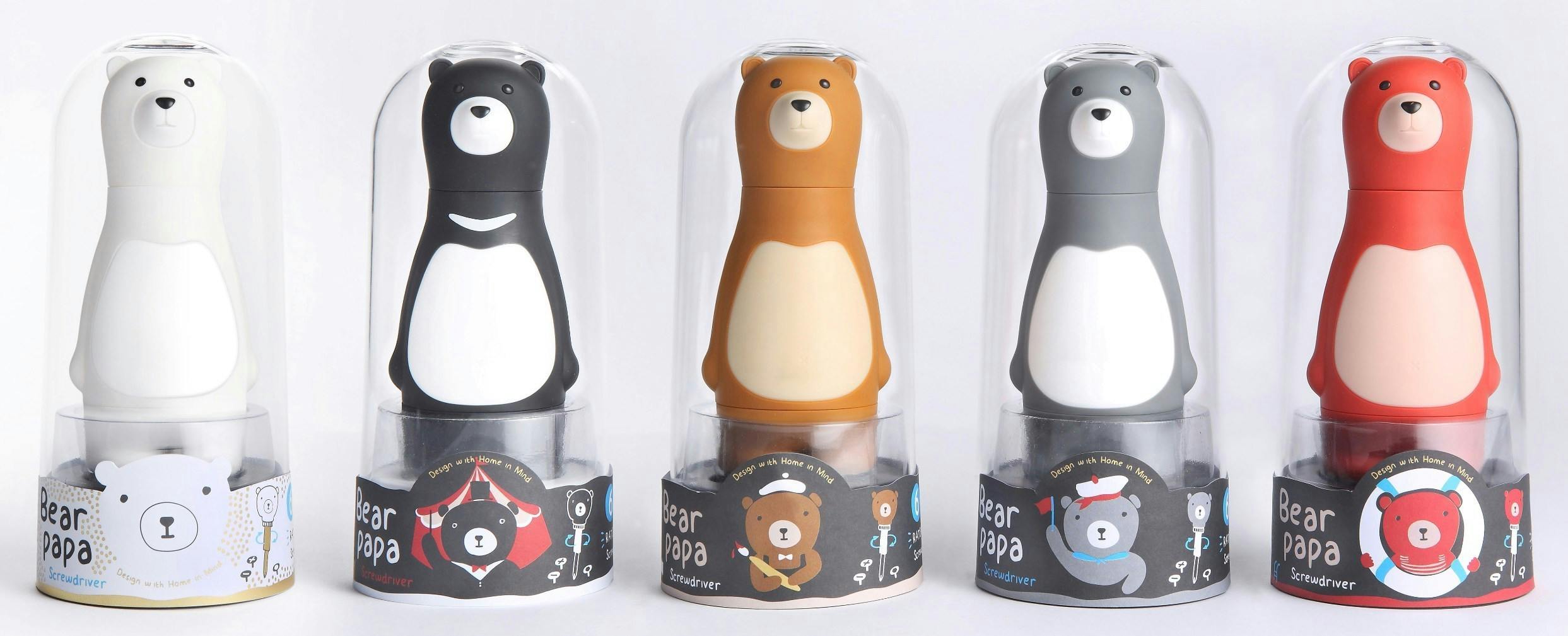 「Bear Papa(ベアパパ)」は、今までにないユニークなアイデアによって台湾で生まれた、インテリアとして飾ることのできる全く新しいタイプの家庭用工具です。ドライバーセットとして使用することができます。