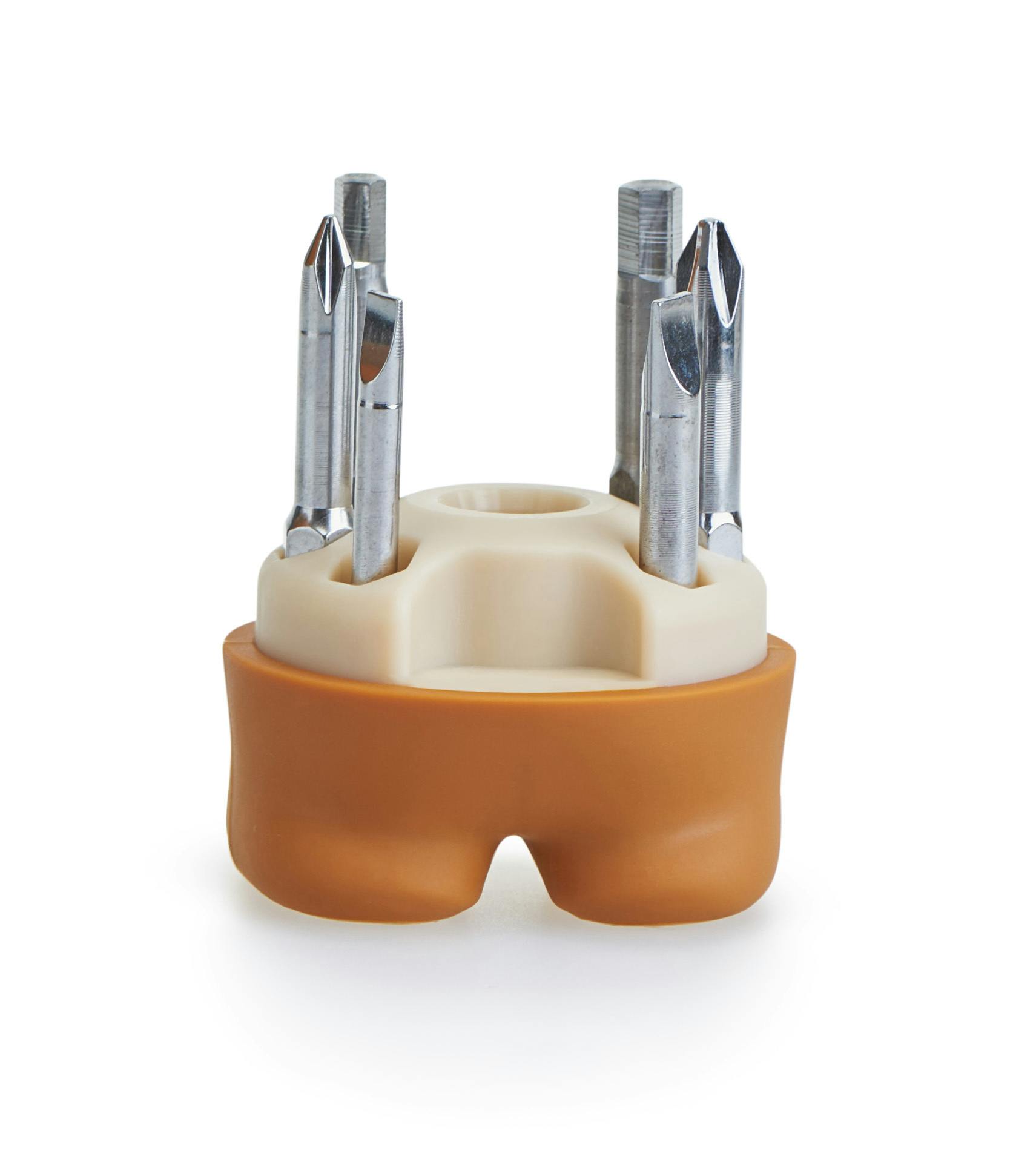 そんなとき、この「ベアパパ」であれば、普段から見える場所に飾っておけるので、使用したい時にすぐに使うことができます。プラスやマイナス、六角のビットが入っているので大抵のネジは締めることができます。