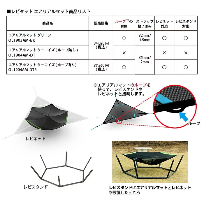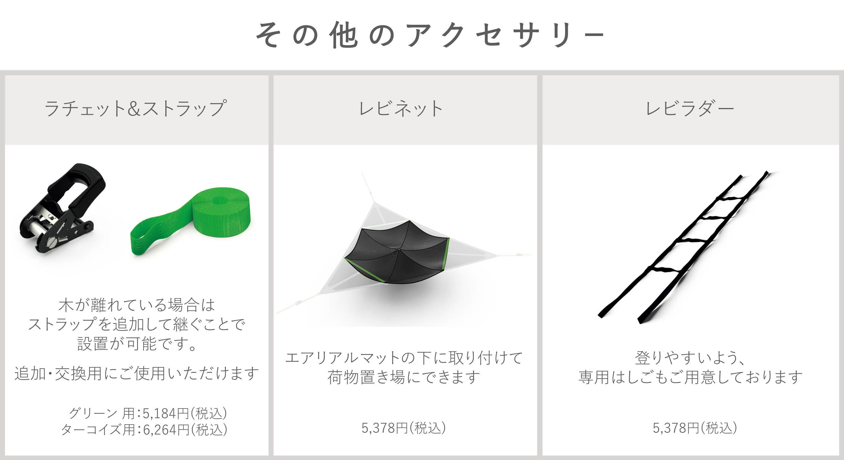 エアリアルマットには、他にもユニークなアクセサリーをご用意しております。