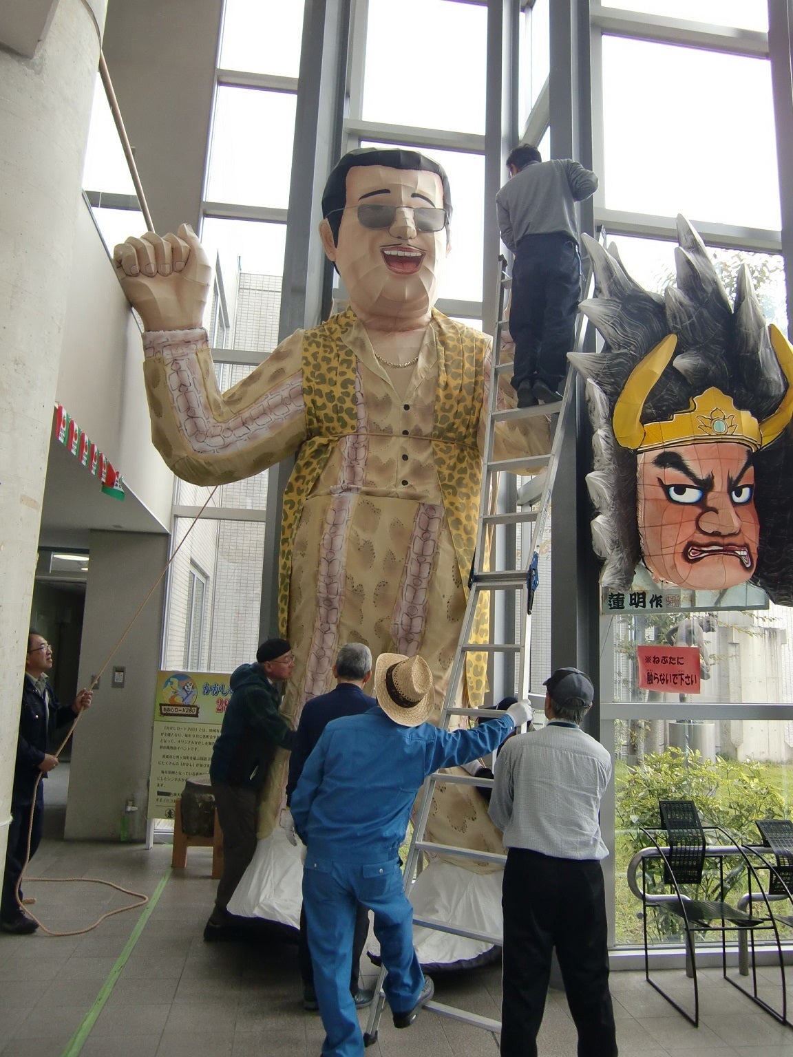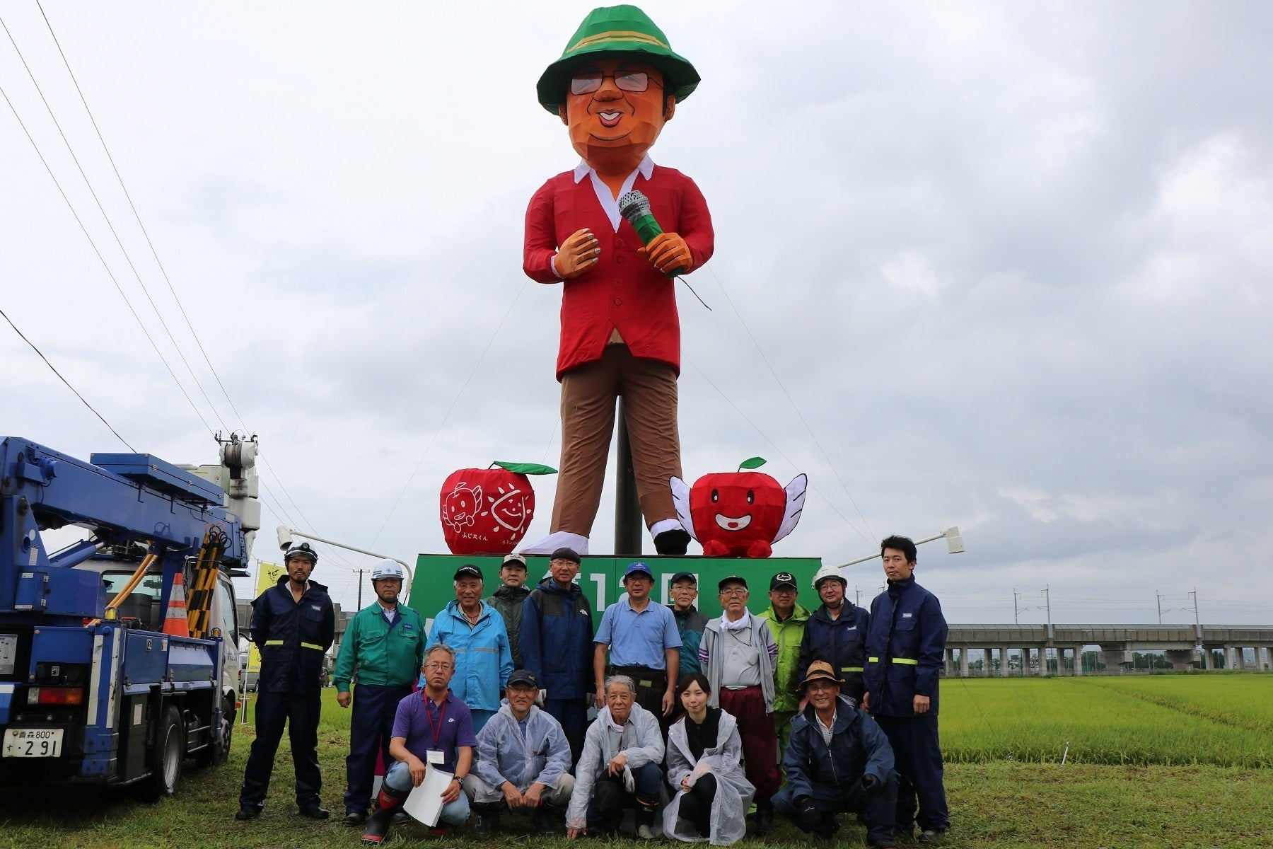 2019/09/04 05:168月28日(水) 毎年この時期になると誰がモデルなるのと、話題になるシンボルとなるかかしが設置されました。今年は五所川原市金木出身の吉幾三さんです。14時から設置予定でしたが雲行きが怪しくなり少し早めに開始、時頼雨も降りましたが、永井実行委員長、制作者でねぶた師の北村蓮明先生と意気投合。微調整しながら設置、最終的には顔の向きを変更をして納得のいく完成となりました。報道陣も大勢取材に訪れました。夕方のニュースは各局かかしロード280シンボルかかし設置のニュース一色となりました。9月1日(日)にセレモニーが行われかかしロード280のスタートとなります。 もっと見る