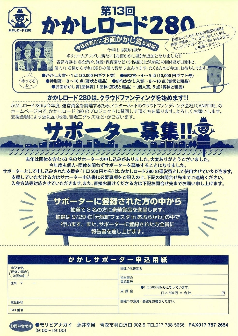 皆様にかかしロード280が愛され、青森の秋の風物詩となるイベントになるよう続けていきたいと思っていますので、今後ともご協力、ご理解をお願いいたします。