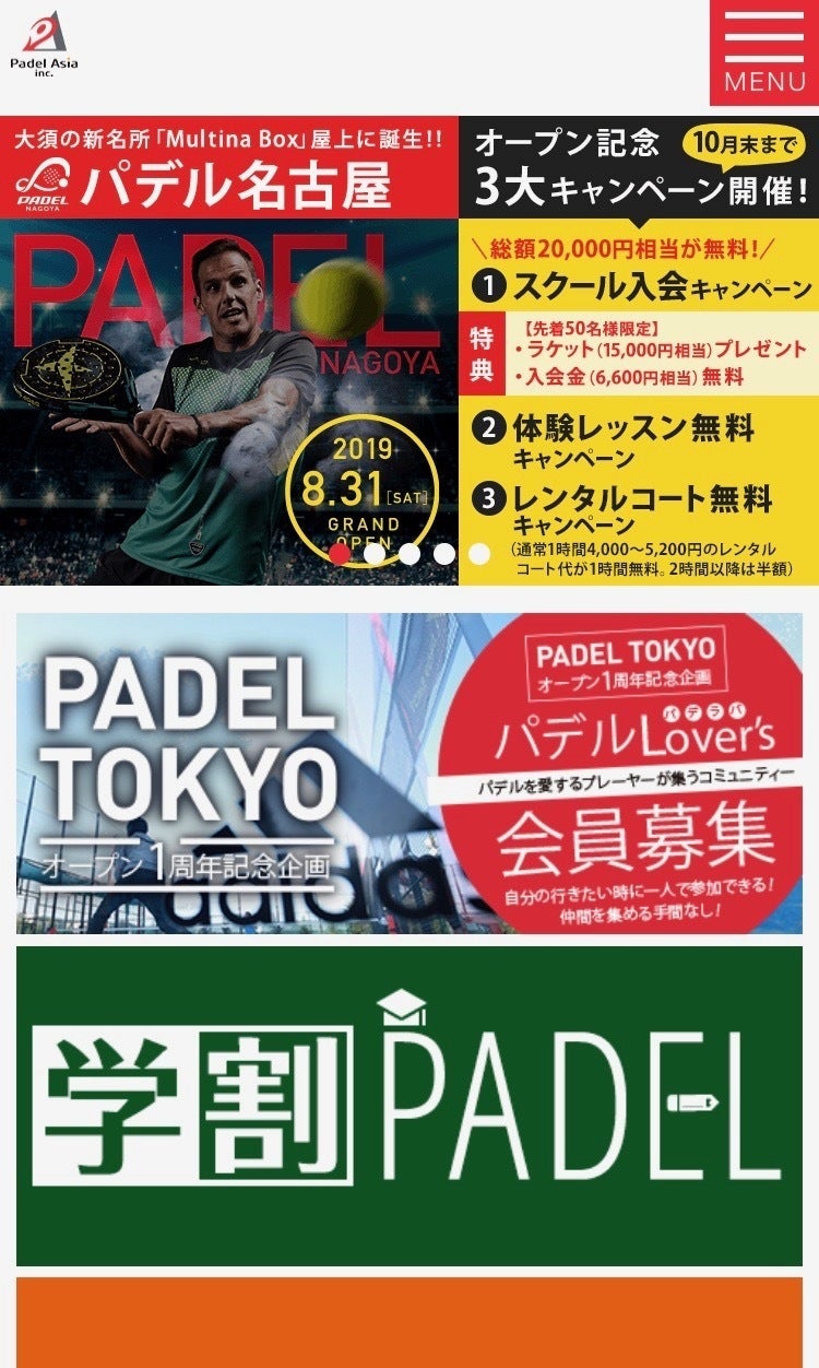 パデル名古屋のHPを本日!8月8日公開致しました!!