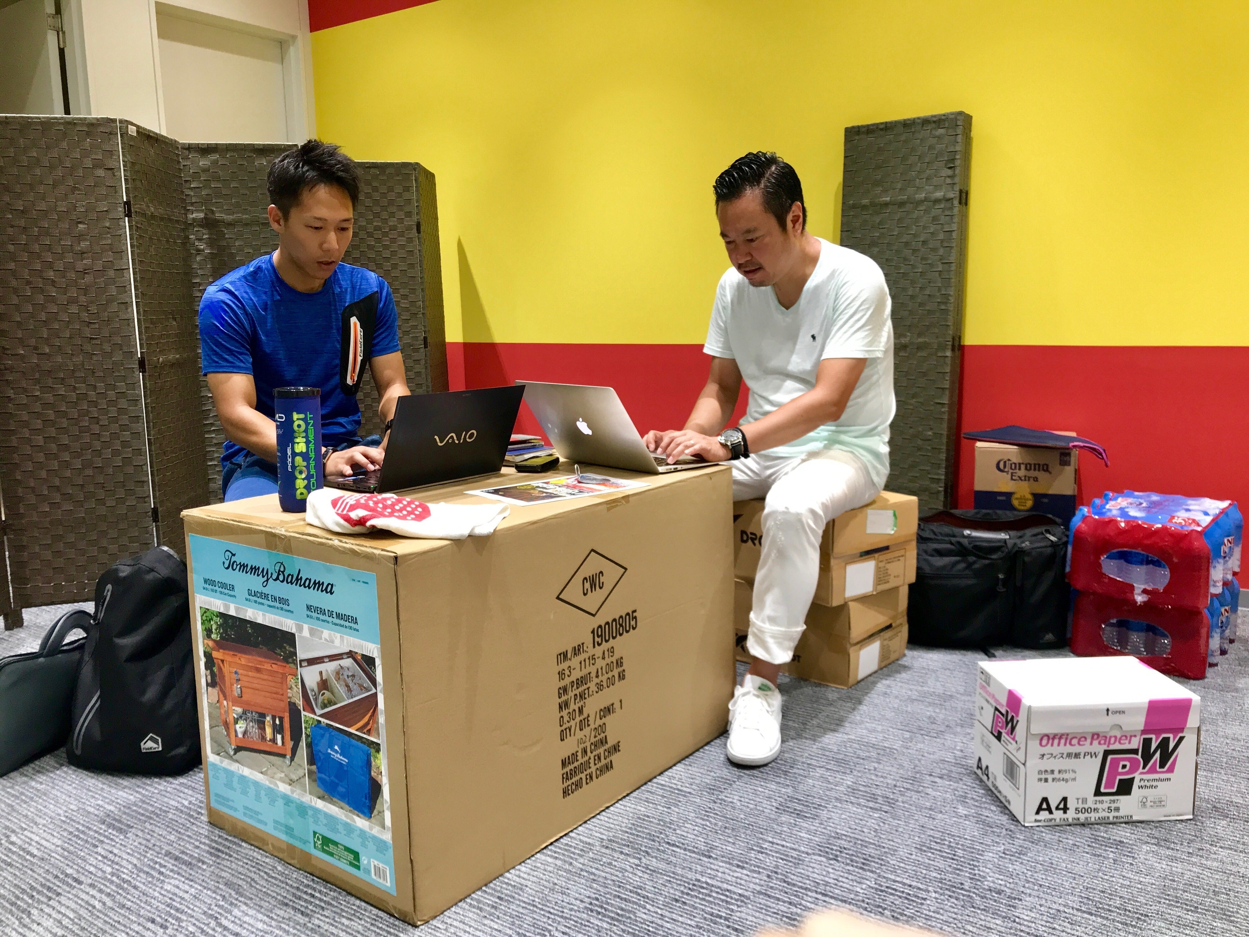 パデル名古屋で作業する時はダンボール箱で作業してました(笑)