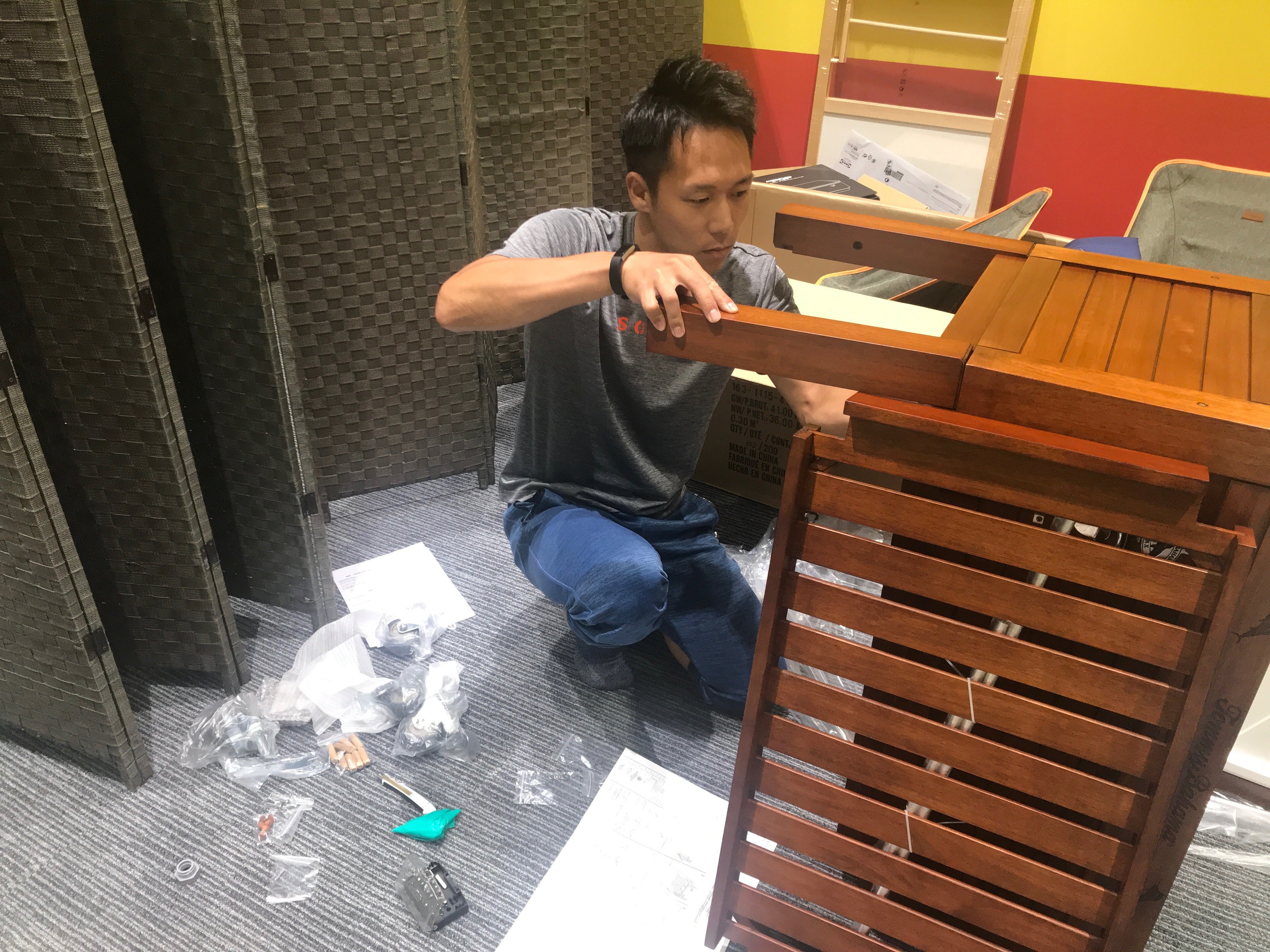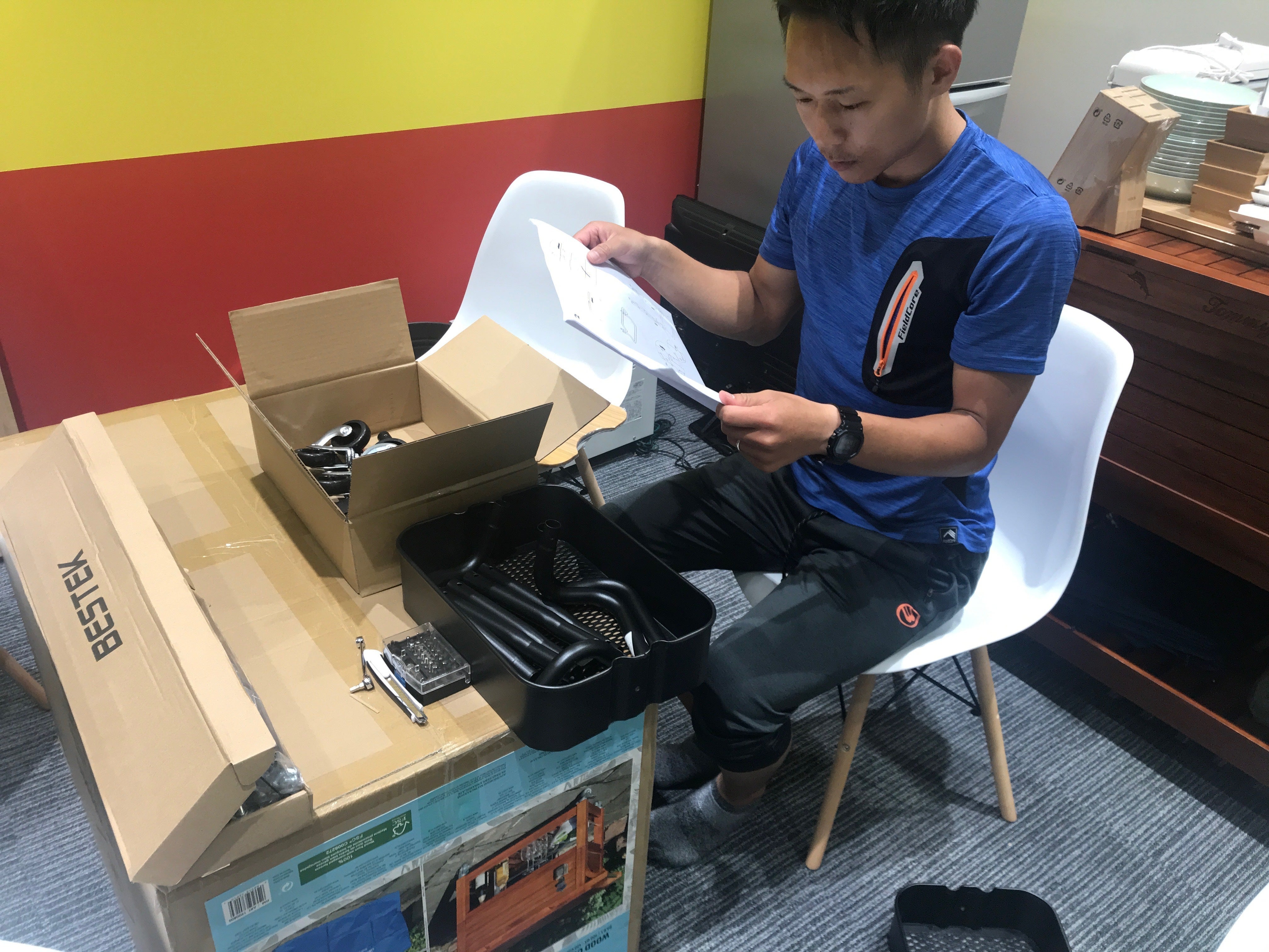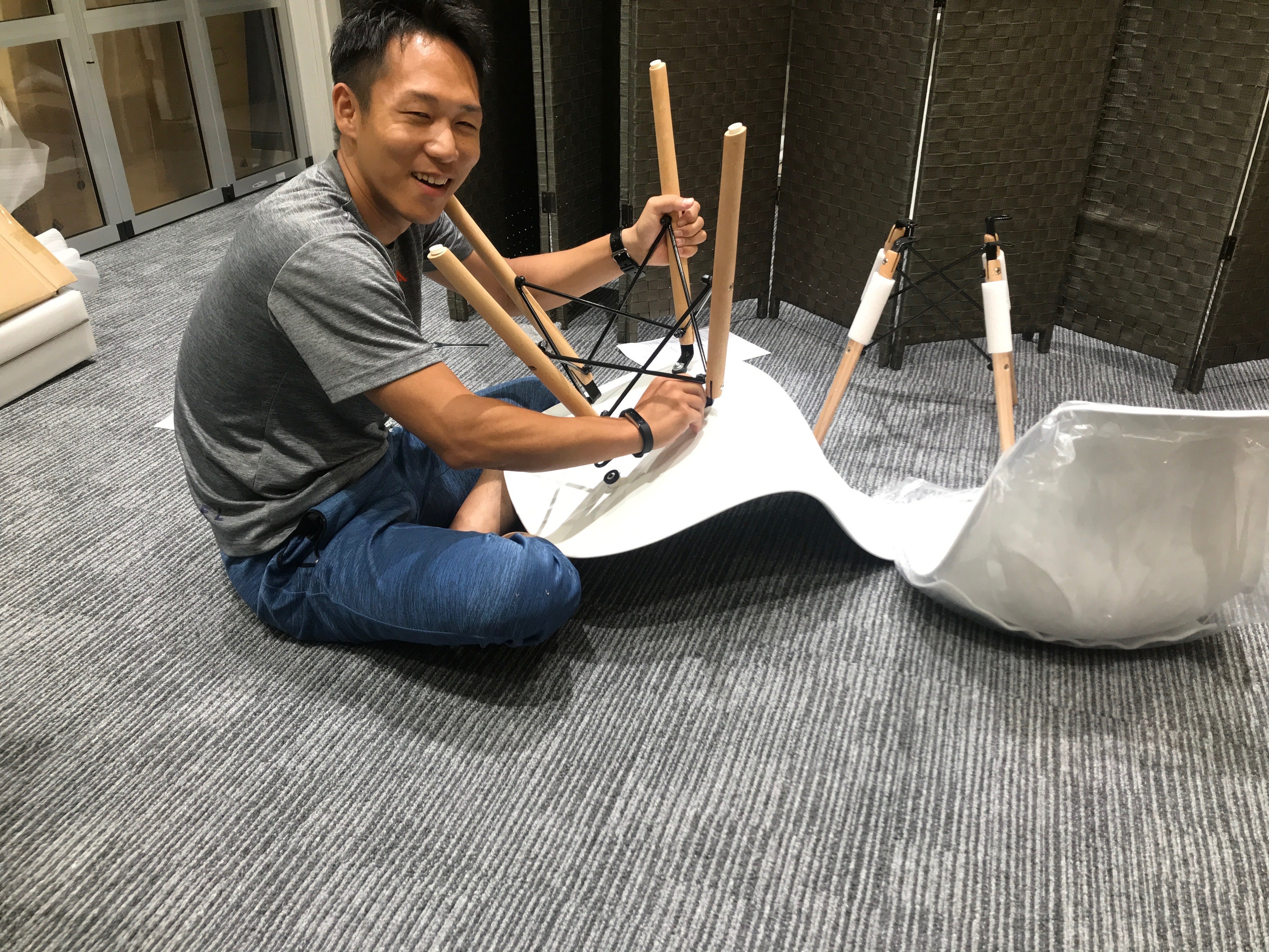 現在、備品の約60%到着し、一つ一つ丁寧に組み上げています。