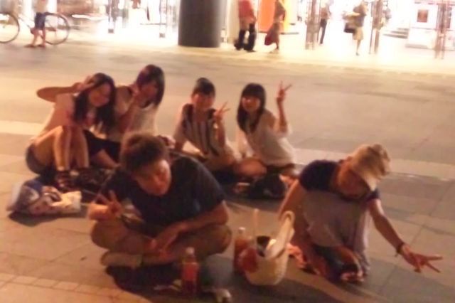 学校終わってみんなと遊んでいた学生さんや