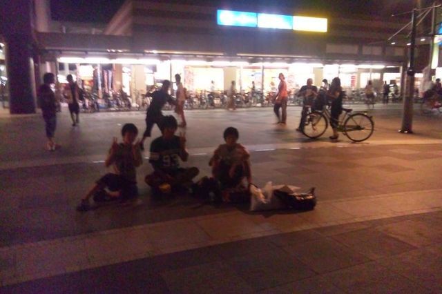 交番の裏に少し広場があったのでそこで荷物を置いて路上ライブ開始!!!