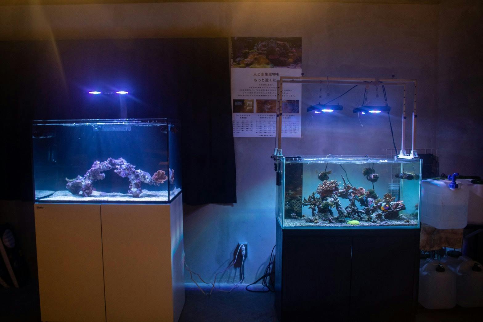 ちなみに水槽の立ち上げというのは、水槽を組み立てて・機材をつけて・水を入れて・水をポンプで循環させ、サンゴや魚たちが生きられる環境を準備をしていくことを指します。アクアリストにもよりますが、僕らはこのタイミングで魚も少しだけ入れて、水質を安定させたらサンゴ等をいれていくという「立ち上げスタイル」を取っています。