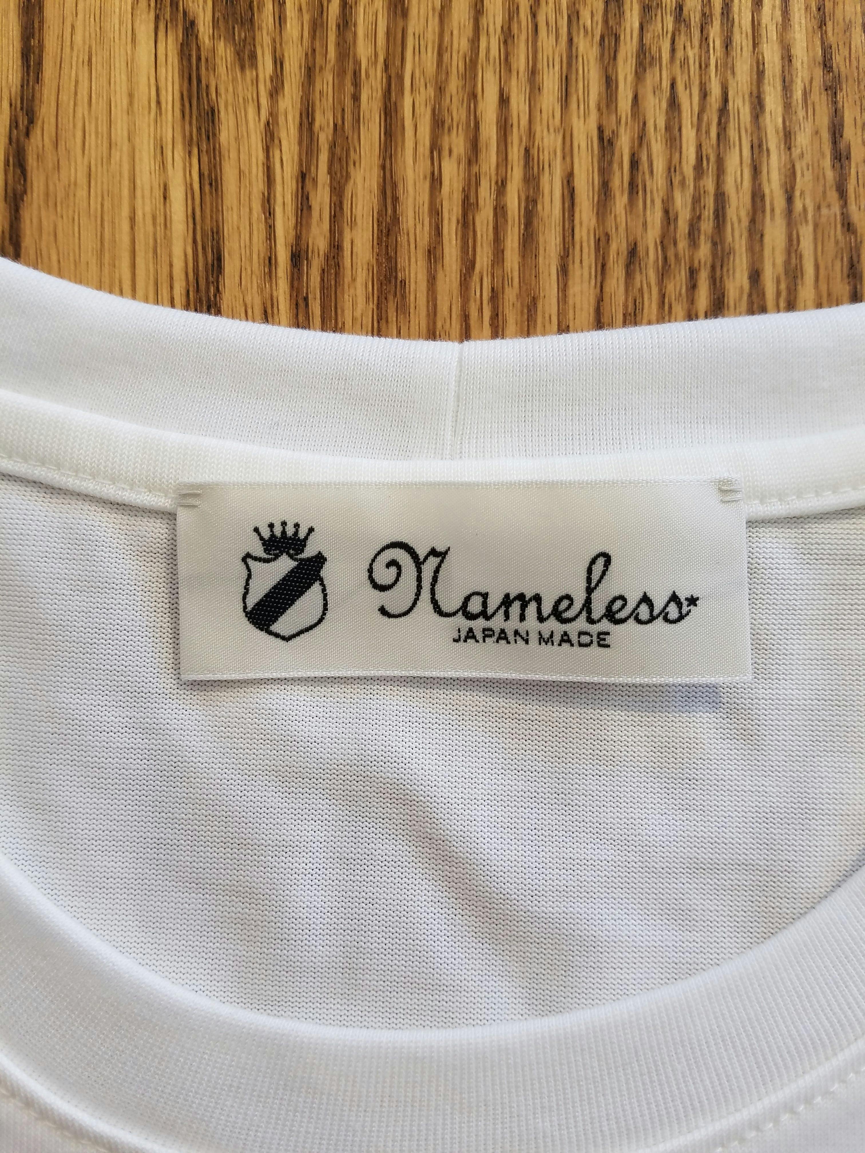 5つのデザインの共通は、若干肩が落ちるサイズ感のボックスシルエット。手縫いにて裏に干渉しないよう二点止めで仕上げたネームタグ。正面の左下には星形の刺繍をイメージカラーであるネイビー色で配しました。