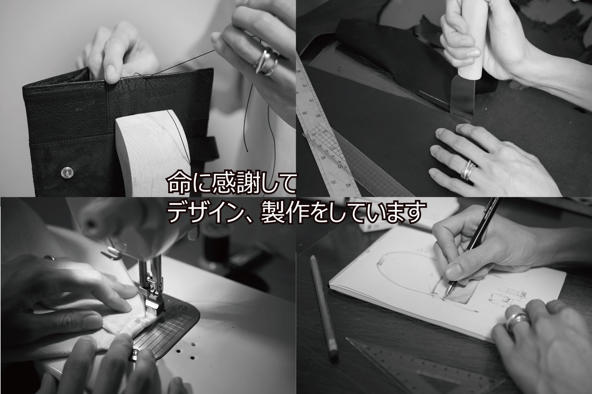こだわりの革になった後は、東京、大阪でのアパレルデザイナー経験と、レザークラフト工房でのものづくりの経験を持つデザイナーの手によって様々なモノにデザインされ、製品になっていきます。