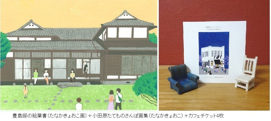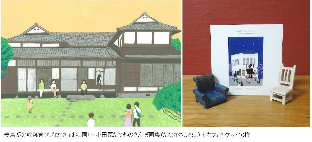 ・10,000円コース=豊島邸の絵葉書(たなかきょおこ画)+小田原たてものさんぽ画集(たなかきょおこ)+カフェチケット10枚