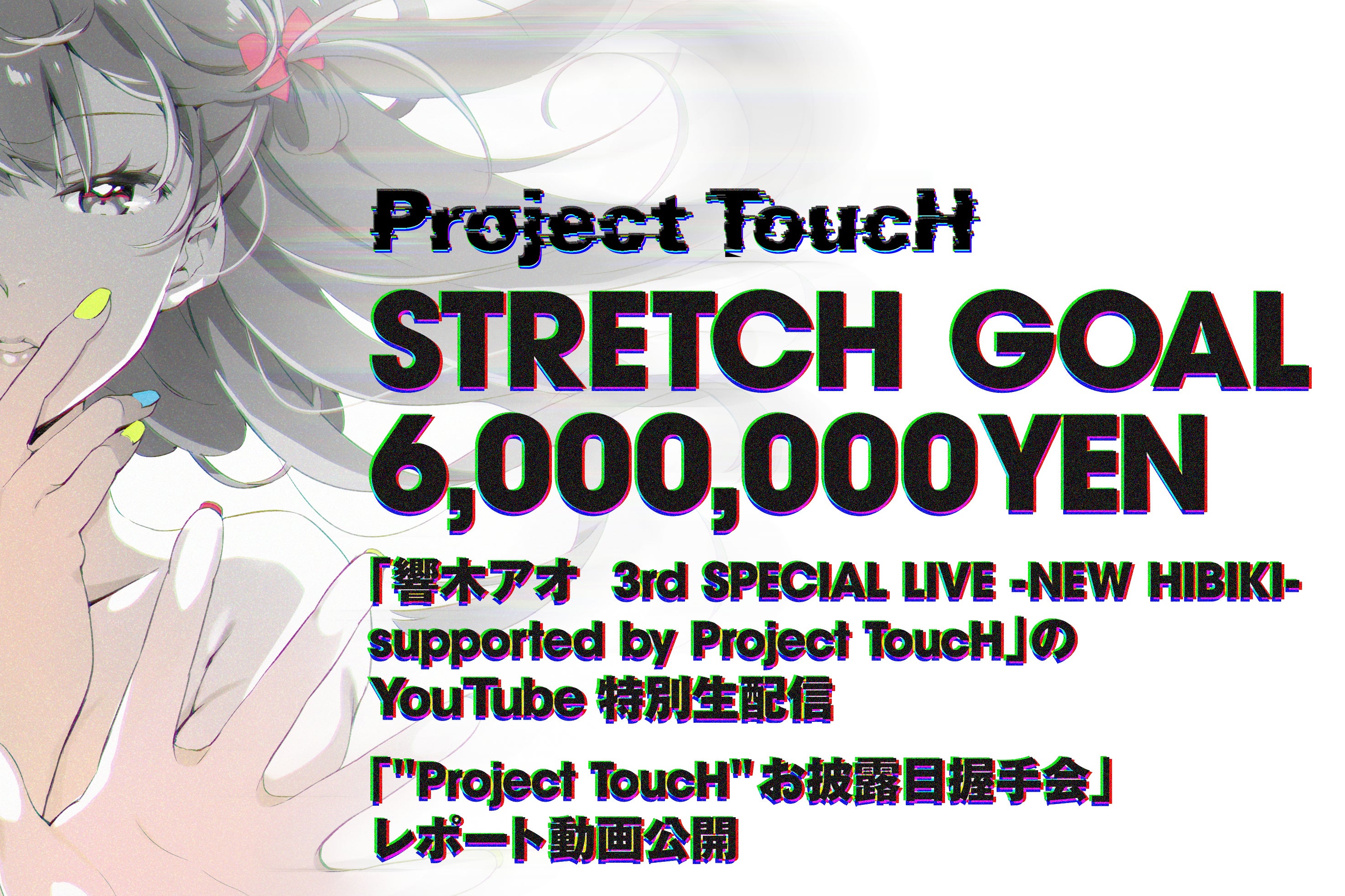 響木アオと一緒に暮らせる世界の実現に向けて。“Project ToucH”運営チームプロデューサーです。クラウドファンディングも残すところ2週間を切りましたみなさまのおかげで目標達成額を超えることができ本当に感謝しかございません。ありがとうございます。響木アオ並びに響木アオ運営チーム一丸となって取り組んできたこのプロジェクトのクラウドファンディング期間終了まで残りわずかとなってまいりました。今回は二点皆様にお伝えしたいことがございます。一点目は支援金がどのように使われるかということ。二点目は新しいリターン枠のご紹介です。まず、みなさまから頂いた支援金の用途についてです。支援金の用途を大まかにまとめるとこのようになります。・手のロボットの主に骨組み部分の経費・手のロボットの主に外身(シリコン)部分の経費・記念ライブ経費・記念ライブで使用する映像演出の経費・握手会会場経費・リターングッズ経費・ストレッチゴール達成後のYouTubeライブ配信経費などが主な経費となっております。響木アオのライブでの演出や、手の質感などさらに良いものを作るためには追加予算があれば達成できるものが幾つもあります。今回のプロジェクトでは「アオちゃんと本当に出会えた!ここに実際にいるんだ!」と感じられ「その経験や存在を味わえる事」を目標にプロジェクトを進行しております。その存在感、経験の質を高めることは、より多くのご支援の上でクオリティの上げるほかありません。「響木アオを現実世界に引き出したい」この思いの一心で制作しております。響木アオ運営チームのプロジェクトに懸ける熱意を理解頂けたら幸いです。いつか、響木アオと一緒に暮らせる世界の実現に向けて。二点目は新しいリターン枠についてです。今回は響木アオのライブをもっとたくさんの方々に見ていただけるようにライブ参加のみの枠を追加でご用意させていただきました。ライブ専用枠としては・響木アオお礼メッセージ動画・響木アオ “Project ToucH” 記念ライブ チケットという形で、ライブ参加が可能な枠となっております。響木アオそして運営チーム共々もっとたくさんの人にライブを楽しんで頂きたいという思いがあり追加させていただきました、ぜひ迷っていらっしゃる方々がおりましたらぜひこの枠からご参加いただけますと幸いです。響木アオそして、運営のチームは様々な巨大企業のVTuberに挟まれつつも自分たちの手で、みなさまの応援を元にこの業界の先端をひた走り続けてきました。ここでもう一度みなさまのお力添えをいただけますと幸いです。