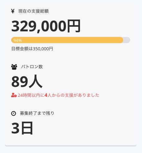 ご支援いただいた皆様、ありがとうございます!お陰様で、目標金額の94%まで達成いたしました!募集締め切りまで残り3日!グッズのみや特典映像のみの遠方支援のリターンもありますので、会場にくるのが難しいかたはチェックしてみてください。銭湯のピアニストは、寒いダジャレで思いついたイベントですが、かならずあたたかい気持ちになるような演奏会�になるように進めておりますので、どうぞ引き続き、応援をよろしくお願いいたします!!